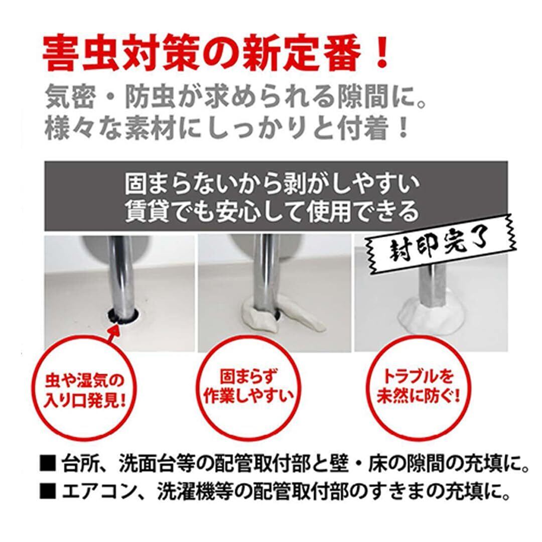 シンク下や配管まわりのすきまから侵入する害虫やいやな臭いを防ぐ「封印パテ」。固まらないので繰り返し使え、賃貸でも安心。100g×2パック入りで必要な分だけ使えて経済的。アイボリーカラーで目立たず自然に馴染み、台所・洗面所・浴室・エアコン・洗濯機まわりなど幅広く活躍する日本製の防虫・防臭アイテムです。