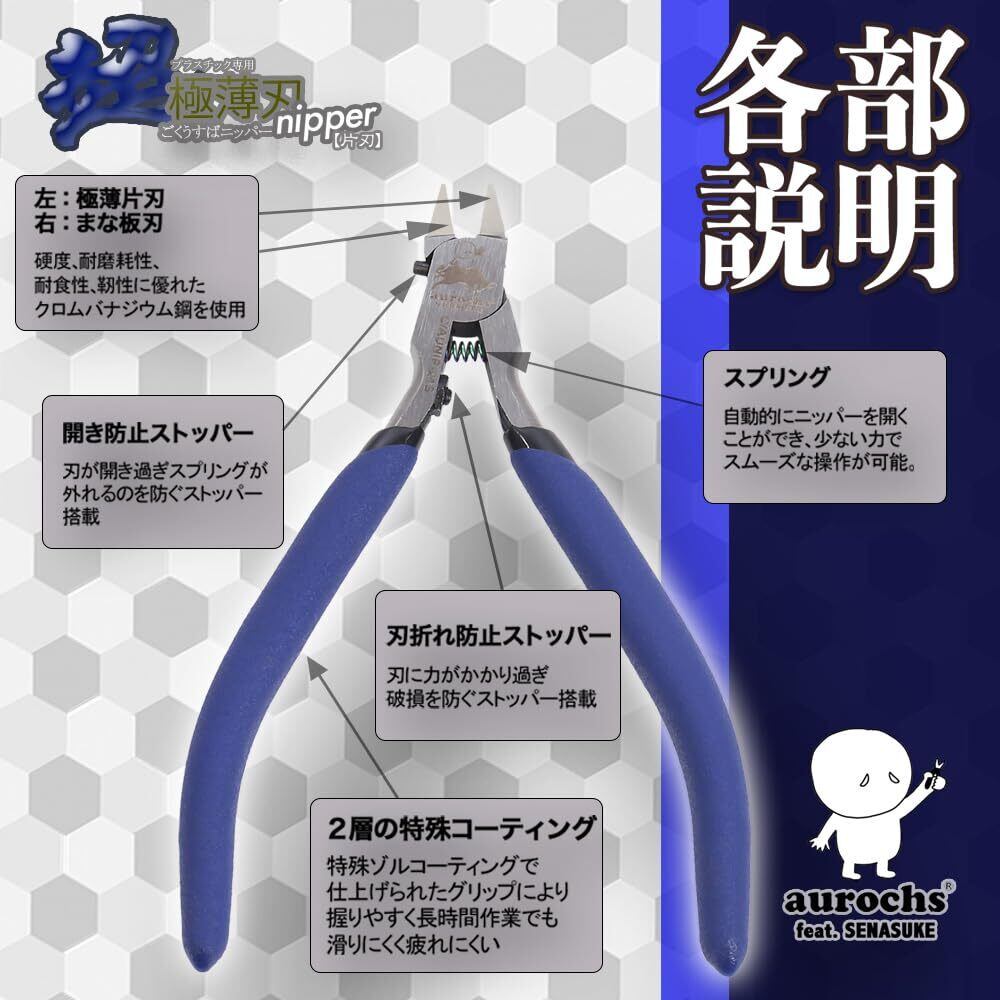 aurochs 超 極薄刃 ニッパー 片刃 精密 プラスチック専用 工具 プラモデル 模型 ゲートカット せなすけモデル (せなすけブルー/右手用)