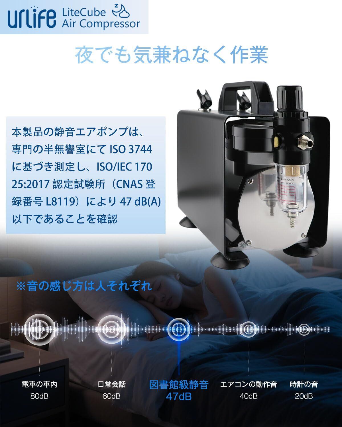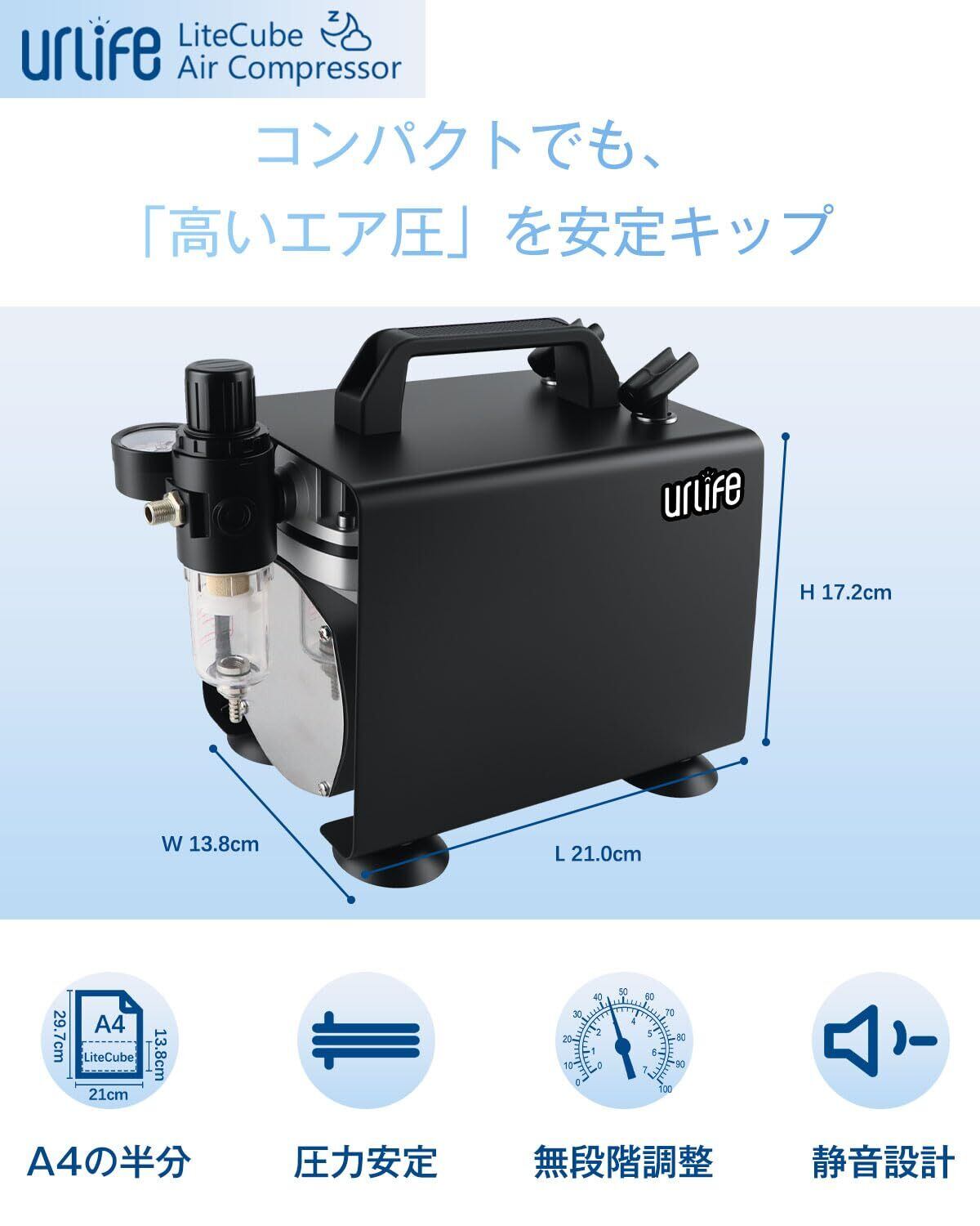 urlife コンプレッサー 小型 A4の半分でも 高圧域 安定供給 最大圧0.4MPa 対応 精密無段階調圧 0-57PSI 47dB 静音 吐出23-25L/min 据え置き ホビー向け LiteCube