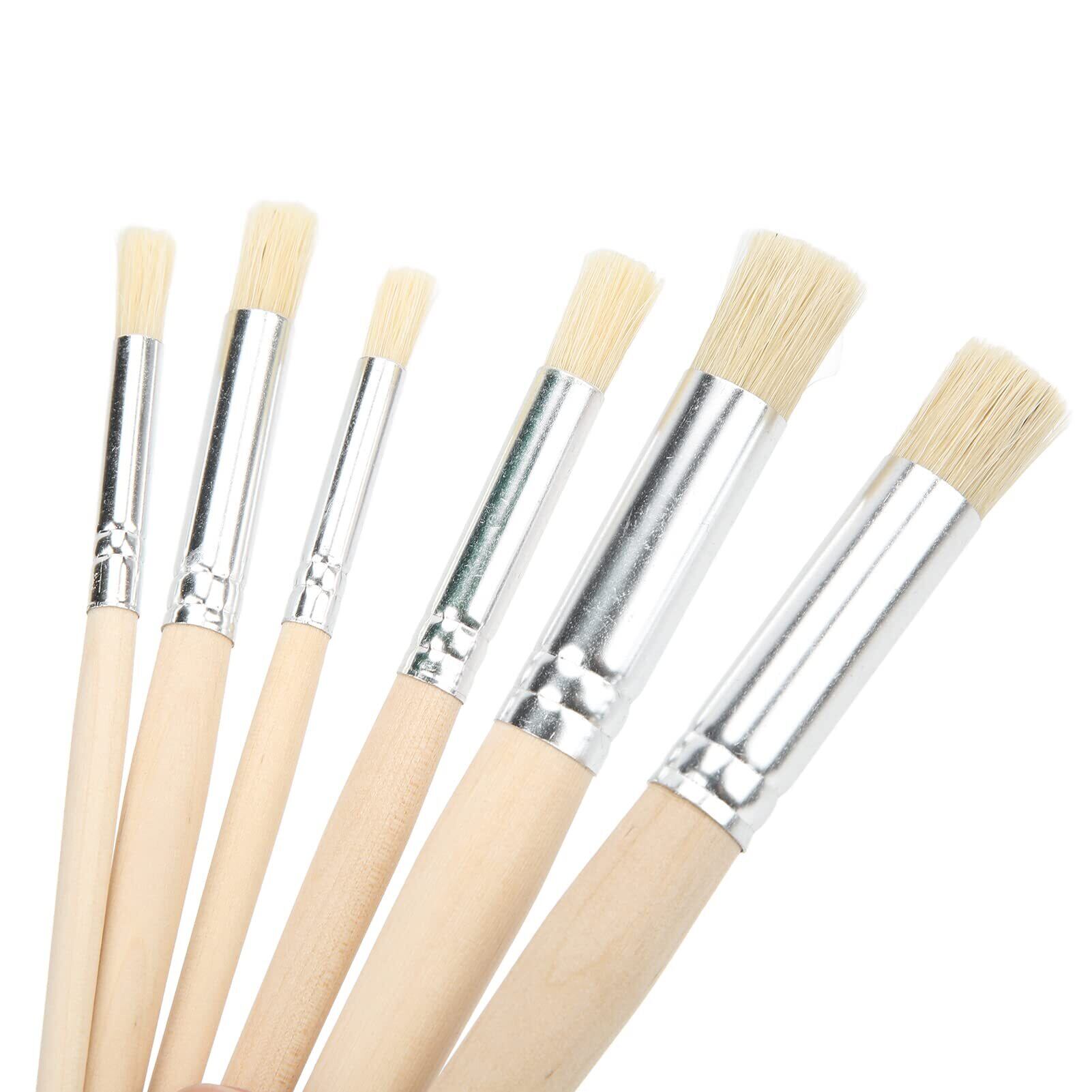 DOACT 木製ステンシルブラシセット、6本、水彩用ペイントブラシ、人間工学に基づいたデザイン、剛毛、ラウンドポイントブリッスル、動物の毛製