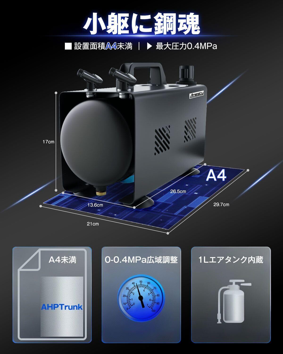 Anesty AHPTrunk 2in1 エアブラシ コンプレッサー 2口独立圧力レギュレーター 静音 タンク付き ワンタッチ色替え セット 模型・プラモデル塗装用