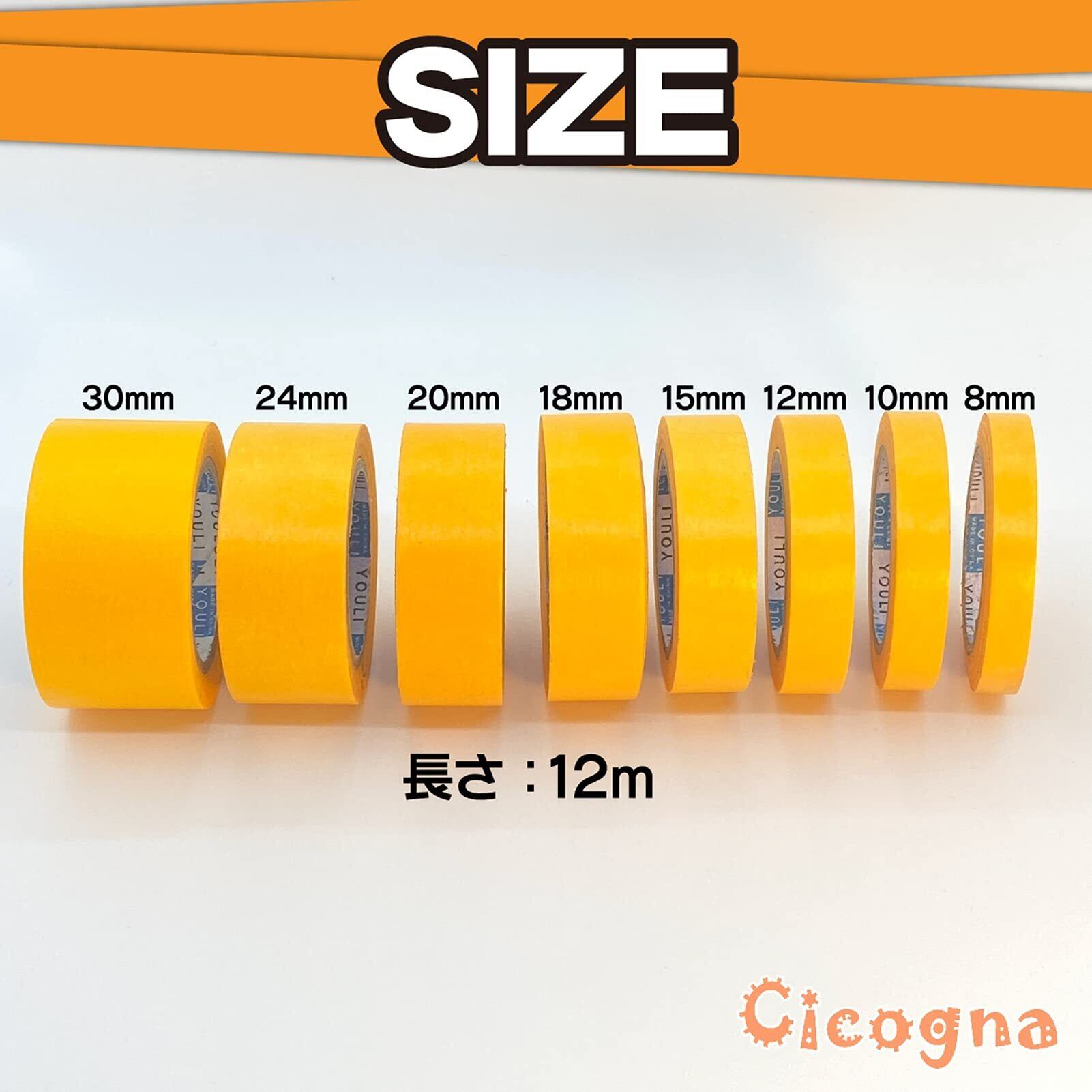 【セット内容】マスキングテープ8本 【サイズ】幅: 8mm, 10mm, 12mm, 15mm, 18mm, 20mm, 24mm, 30mm / 長さ:12m 【カラー】イエロー
