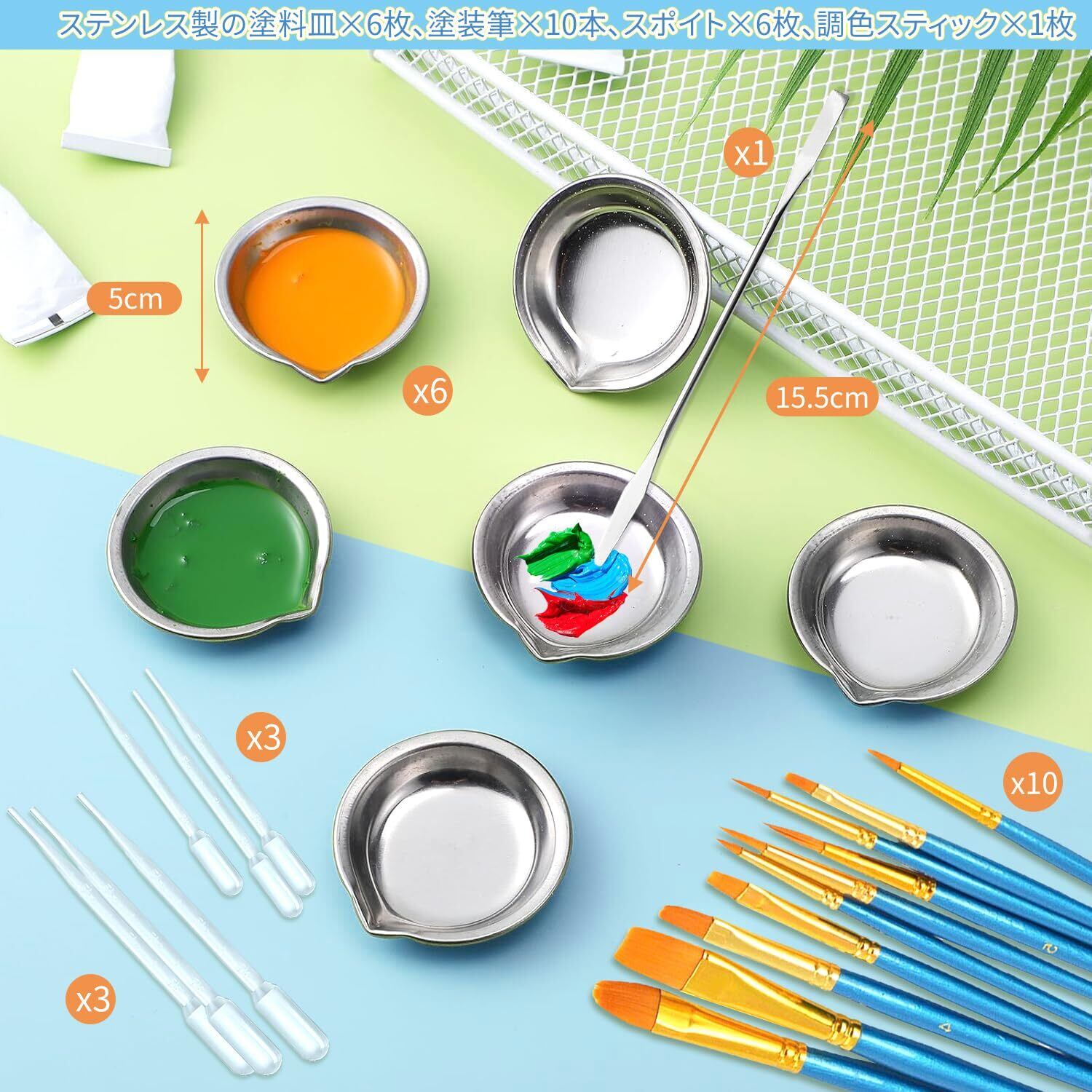✨【材質特徴】高耐久ステンレス製調色皿の採用:耐久性に優れたステンレス素材の調色皿6枚をセット。サビにくく洗浄が簡単で、複数の色を同時に調色する作業にも最適です。注ぎ口付きデザインで塗料の取り扱いが楽になります。