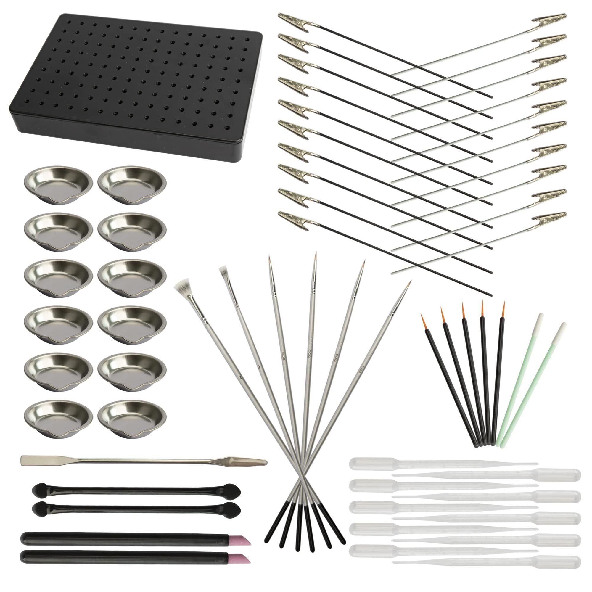 プラモデル 塗装 モデルペイントセット クリップ 塗料工具 塗装スタンド/ベース 塗装筆 デカールスキージー 面相筆 スポンジ筆 塗料皿 スポイト 調色スティック 塗装セット 塗料皿 61点セット プラモ フィギュア 道具 模型 ホビー