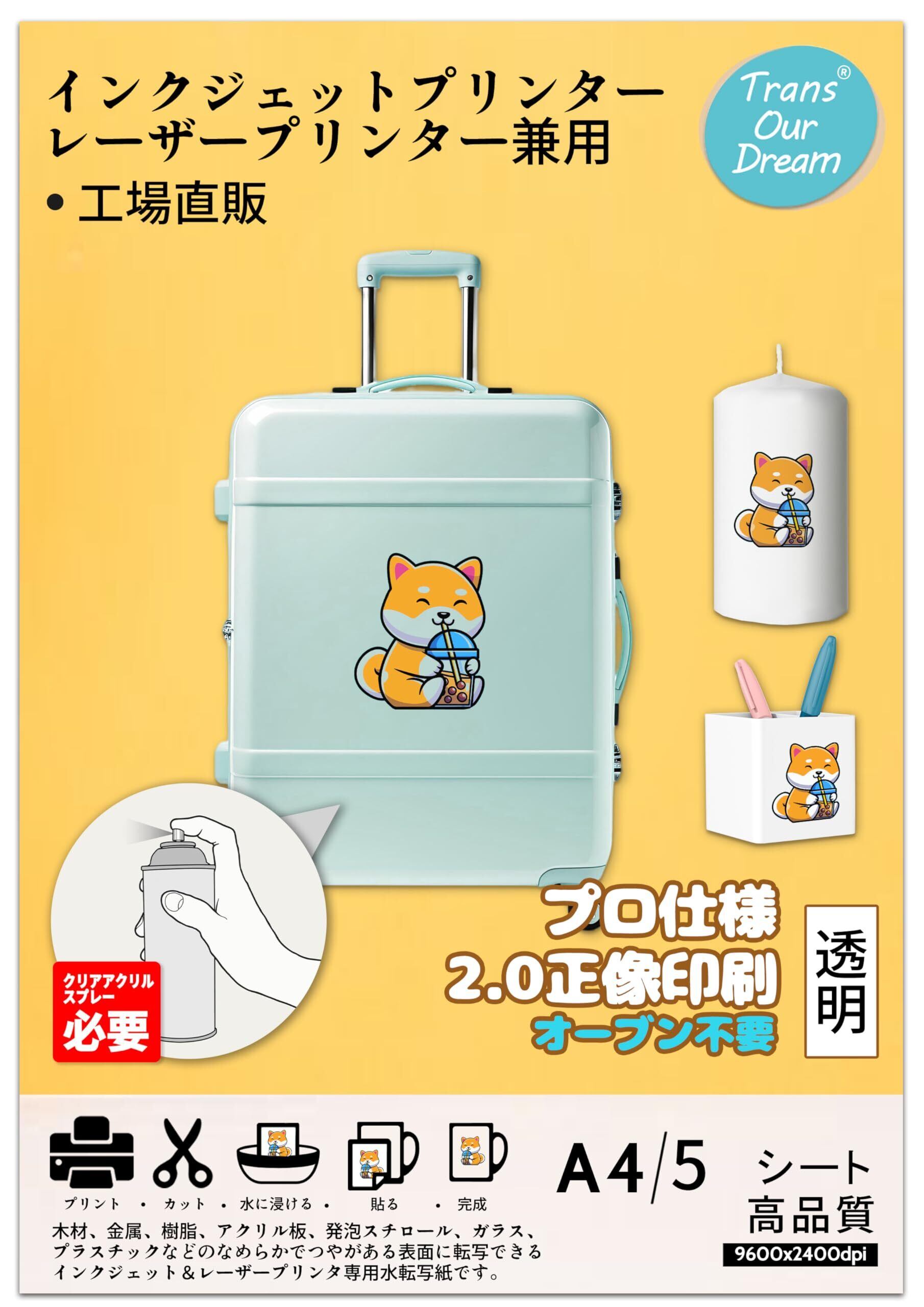 TransOurDream 真正の水転写シート A4 5枚 透明 水転写紙 クリア インクジェットプリンター&レーザープリンター共用 転写デカール デカール 自作 デカール用紙 薄型 DIY JP-8-5