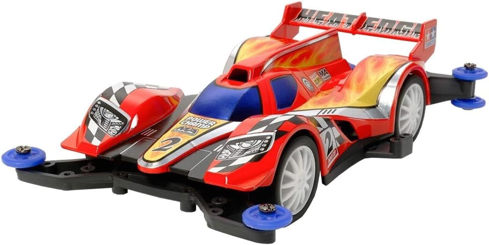 【 闘志が燃える、情熱の空力マシン 】 ダブルシャフトモーター搭載の一体型MAシャーシ第二弾、ヒートエッジがミニ四駆PROシリーズに登場です。 プロトタイプレーシングカーをモチーフにしたボディは、フロントフェンダー先端両サイドのカナードと、コクピットからリヤにかけての大きなシャークフィンが特徴。 実車ムードを高めるローハイトタイヤ&フィンタイプのホワイトホイールが足元を引き締めています。 また、ボディに映えるレッドをベースに炎とチェッカーのグラフィックをプラスしたカラーリングは専用のメタリック調ステッカーで手軽に再現できます。 【 駆動効率を追求したMAシャーシ 】 MA とは、Midship AERO(ミドシップエアロ)の略。 モーターを車体中央に搭載した、ミドシップレイアウトの「MSシャーシ」、走行中の気流(エアロ)を特に意識してデザインされた「ARシャーシ」。 それぞれの優れた特徴を1台のシャーシにまとめあげたのがこの「MAシャーシ」です。 もちろん、これまでに蓄積されたレーシングノウハウをいかして、3.5:1のギヤ比を採用、6個の低摩擦樹脂ローラーやリヤスキッドバーを標準装備するなど、走行性能も徹底的に磨き上げました。 加えて、一体型のモノコック構造の採用で、組み立てやすさやメンテナンス性もさらに向上するなど、初心者からベテランレーサーまで、また、小さめのコースで行われる街かどレースから、大型の特設5レーンサーキットの公認競技会まで、幅広く対応できるシャーシです。 【 実車レーシングカーをイメージした空力ボディ 】 フロントフェンダー両サイドのカナードやインダクションポッドなど、ヒートエッジは実車のレーシングカーをイメージした空力ボディを採用。 「シャークフィン」と呼ばれる背びれのような整流板で空気の流れを整え、リヤウイングに誘導。より大きなダウンフォースを狙っている。 車体後部でもスムーズに空気を流し、車体底面から出てくる気流と合流。 スピードの伸びるストレートでの、車体の安定性を目指した。 【 基本スペック 】 ●完成時の全長156mm ●全幅97mm ●ダブルシャフトモーター付き ●組み立ては接着剤不要のはめ込み式 【 別にお求めいただくもの 】 ●単3形電池2本