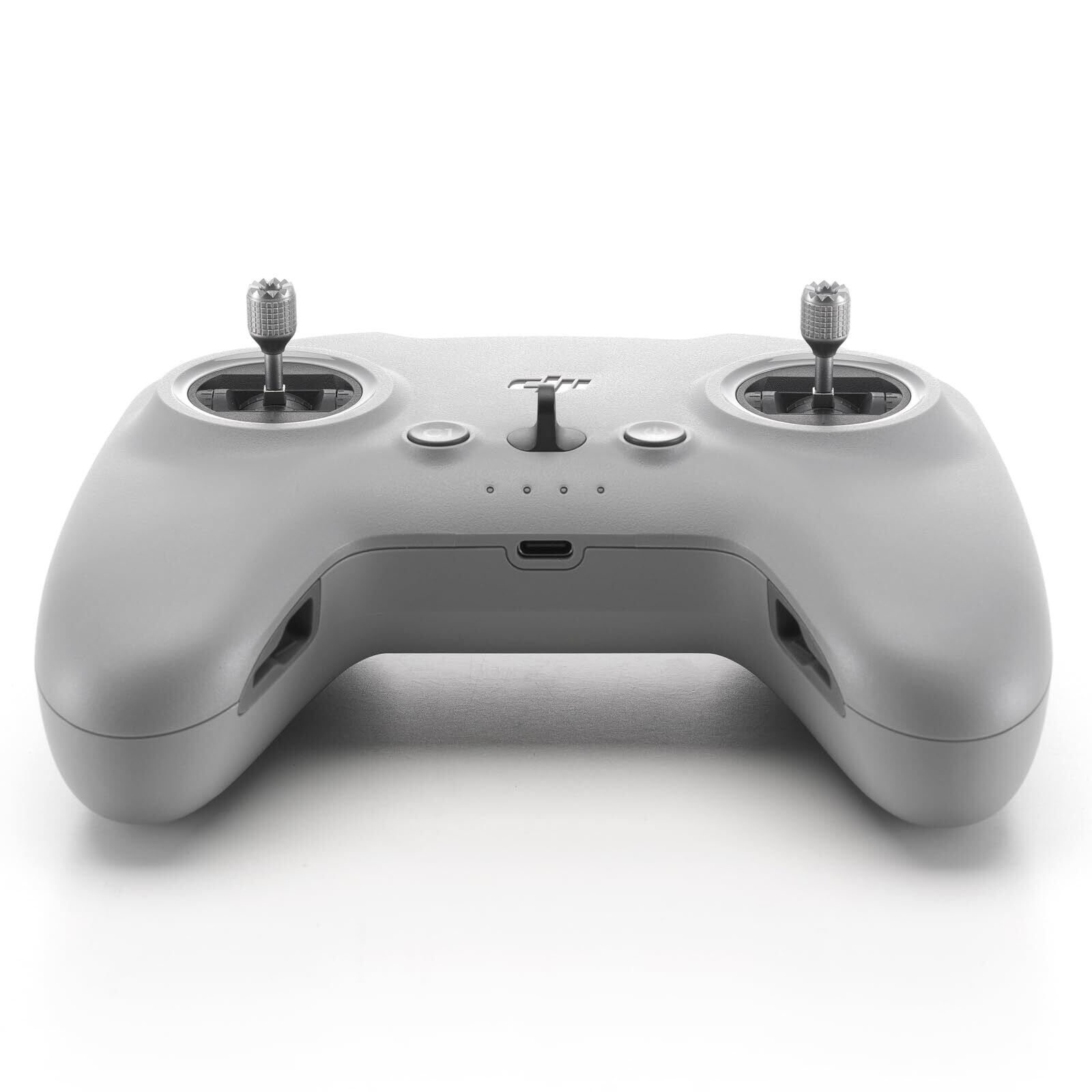 アンテナを内蔵し、DJI O4映像伝送のために設計されたこの送信機は、前モデルよりも軽量になり、駆動時間が長くなっています。制御スティックが2 mm長くなり、指1本だけを使った操作と指2本を使った操作のどちらにも対応します。