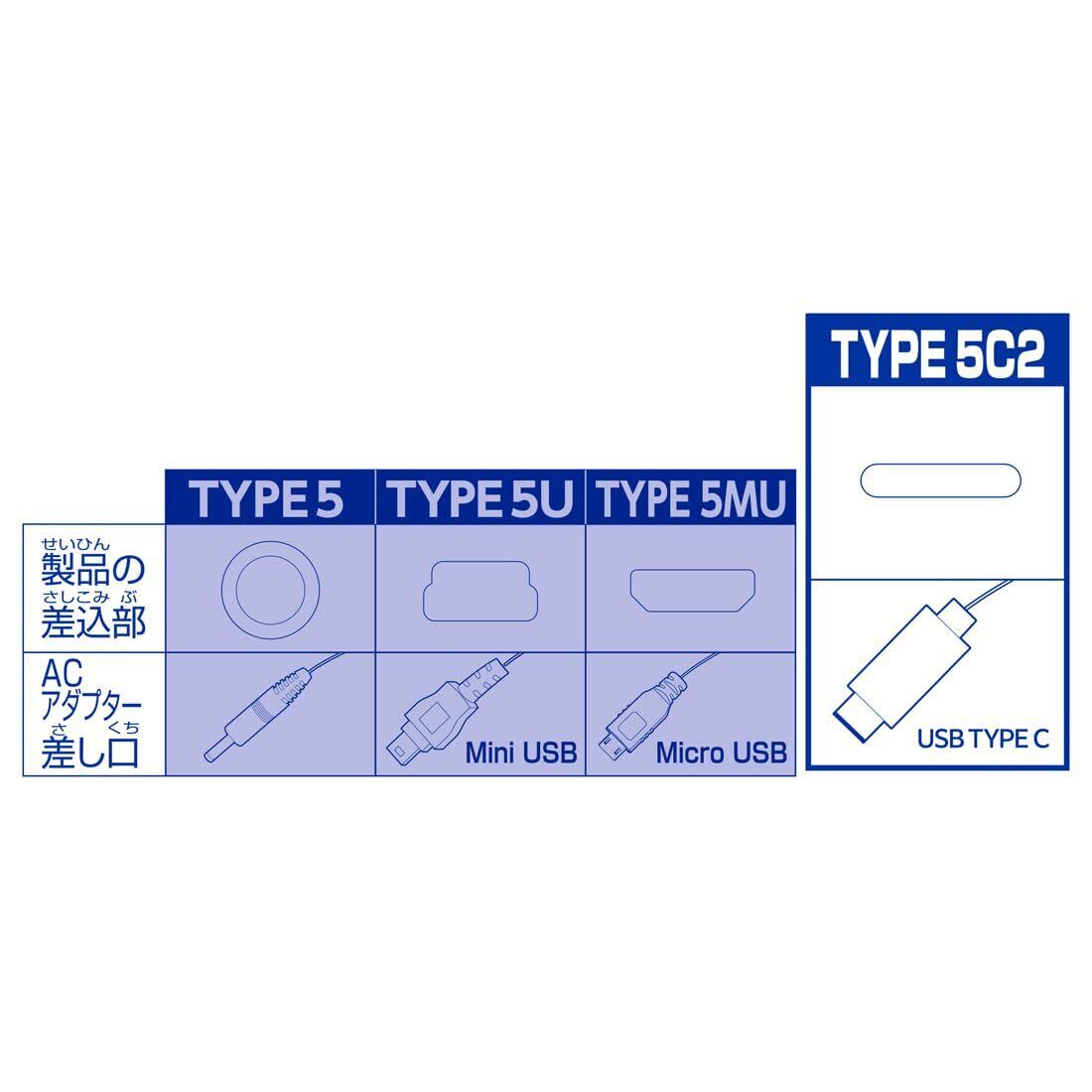 USBタイプCのプラグがついた給電・充電用2Aタイプの玩具専用5V ACアダプターです。
