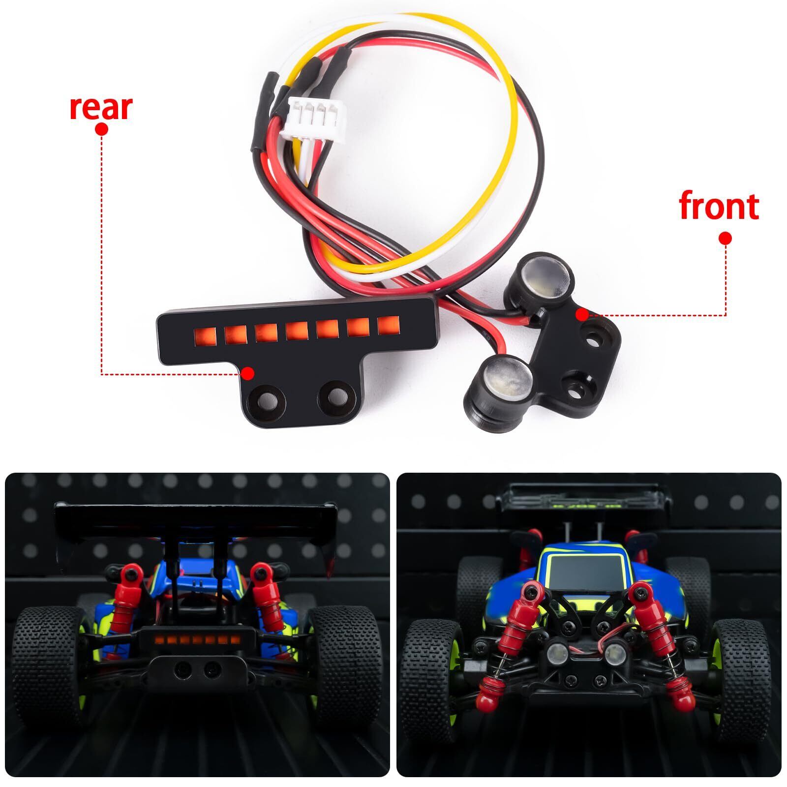 フロントライトは白、リアライトは赤。あなたのRCカーをよりクールで魅力的に見せる