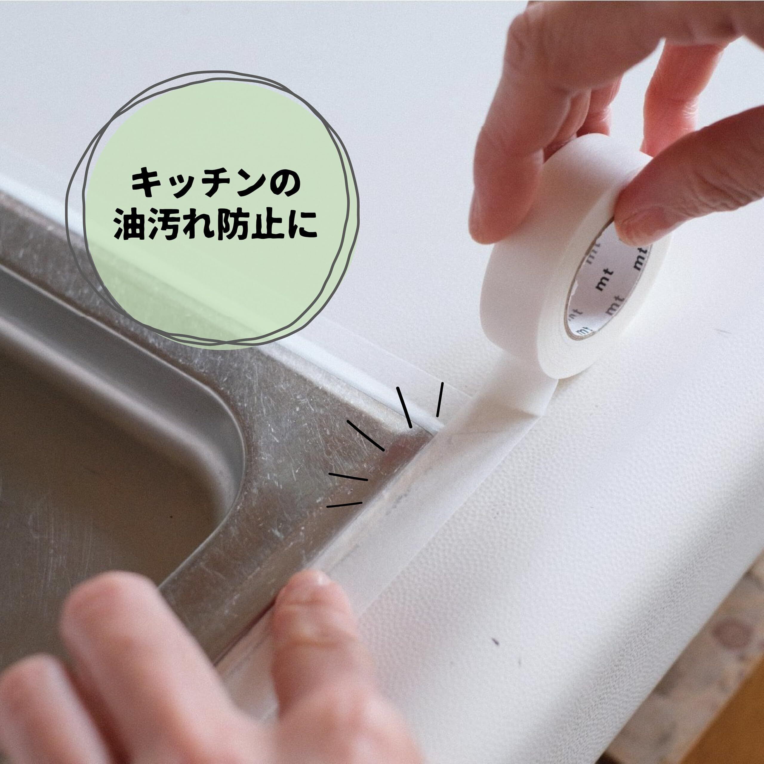 【カビと汚れを防ぐマスキングテープ】カビやピンクヌメリを防ぎ、窓際やお風呂の仕上げ掃除に使えるマスキングテープです。手で切れて、貼って剥がせます。防カビ剤配合で、剥がした時にカビやピンクヌメリを抑え清潔を保ちます。