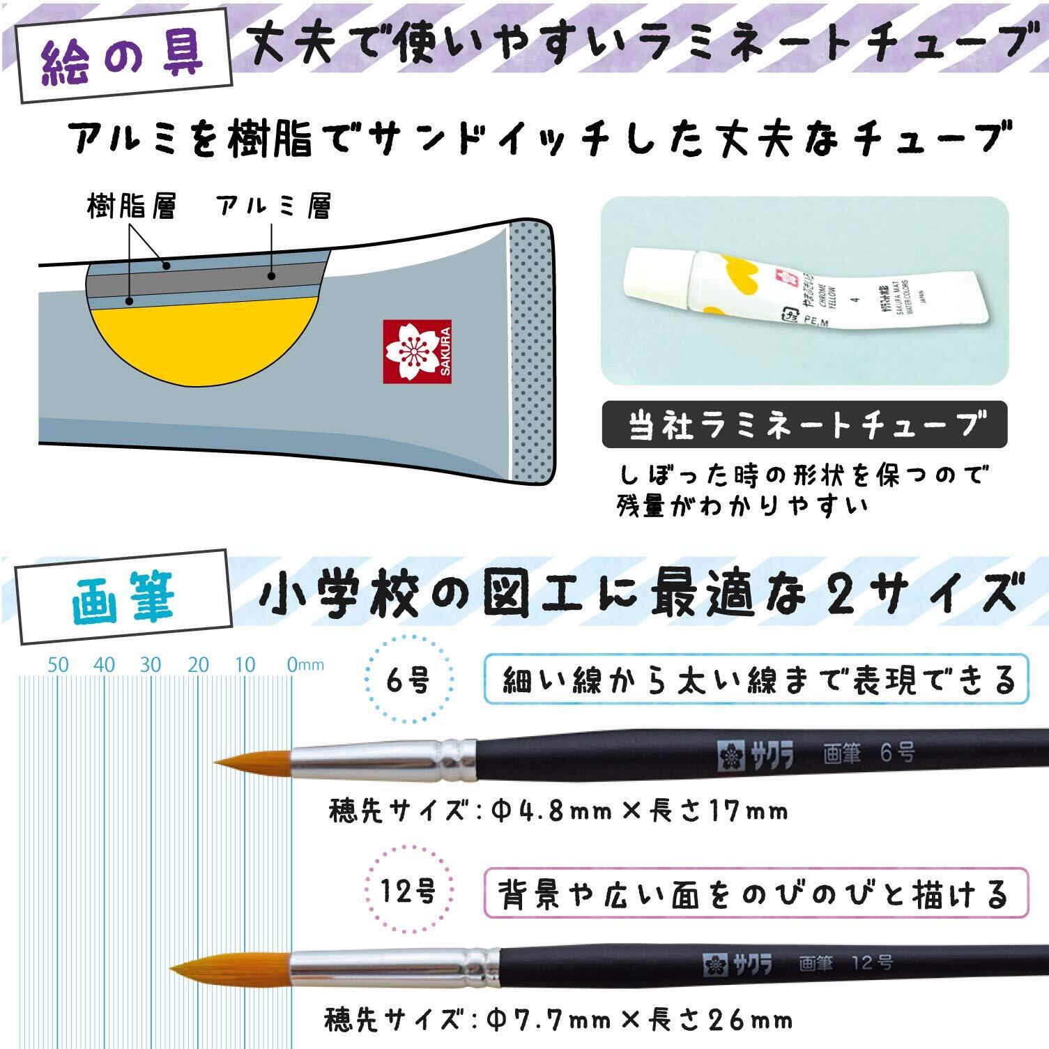 マット水彩12色(12ml)ラミネートチューブ絵具・画筆・画筆ケース・パレット・筆洗・ぞうきん