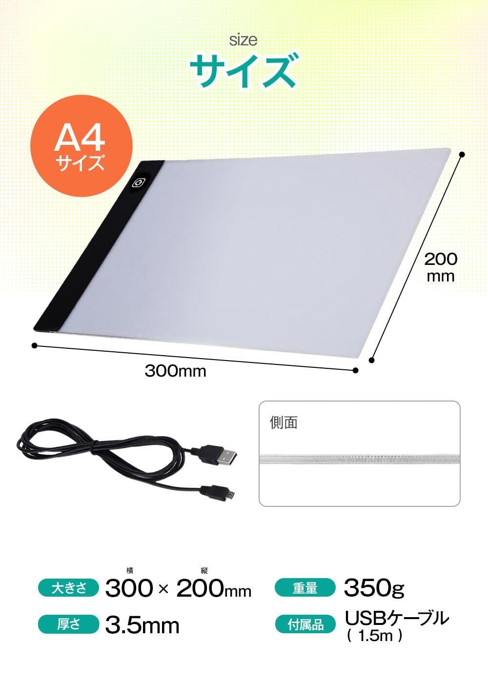 トレース台 A4 LED ライトテーブル 無段階調光 1.5m×USBコード付き (A4サイズ)
