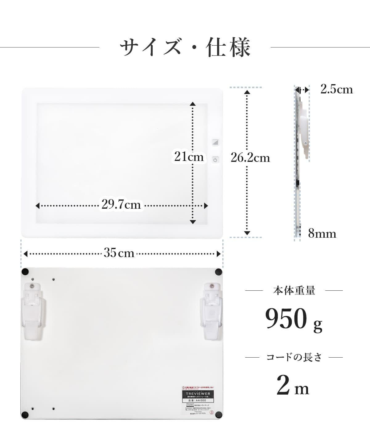 トレビュアー トレース台 A4 ホワイト 薄型 調光 3年保証 ライトボックス ライトボード ライトテーブル トライテック A4-500-W