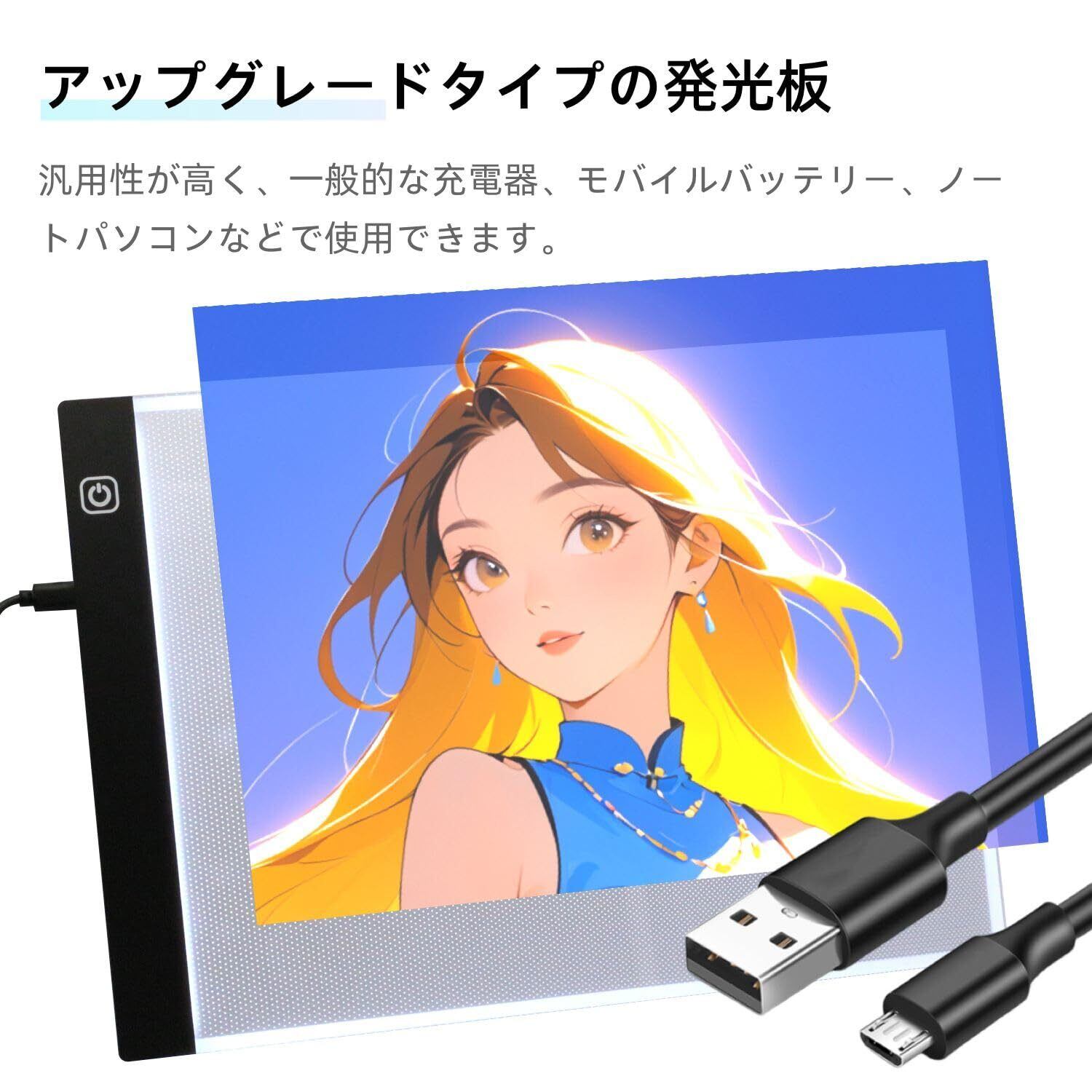 トレース台 A4 LED ライトテーブル トレースボード 無段階・3段階調光 高輝度 USB給電 超薄型 ライトボックス 底面ゴム足付き マンガ・イラスト・製図用 1.5m×USBコード付き (A4サイズ)