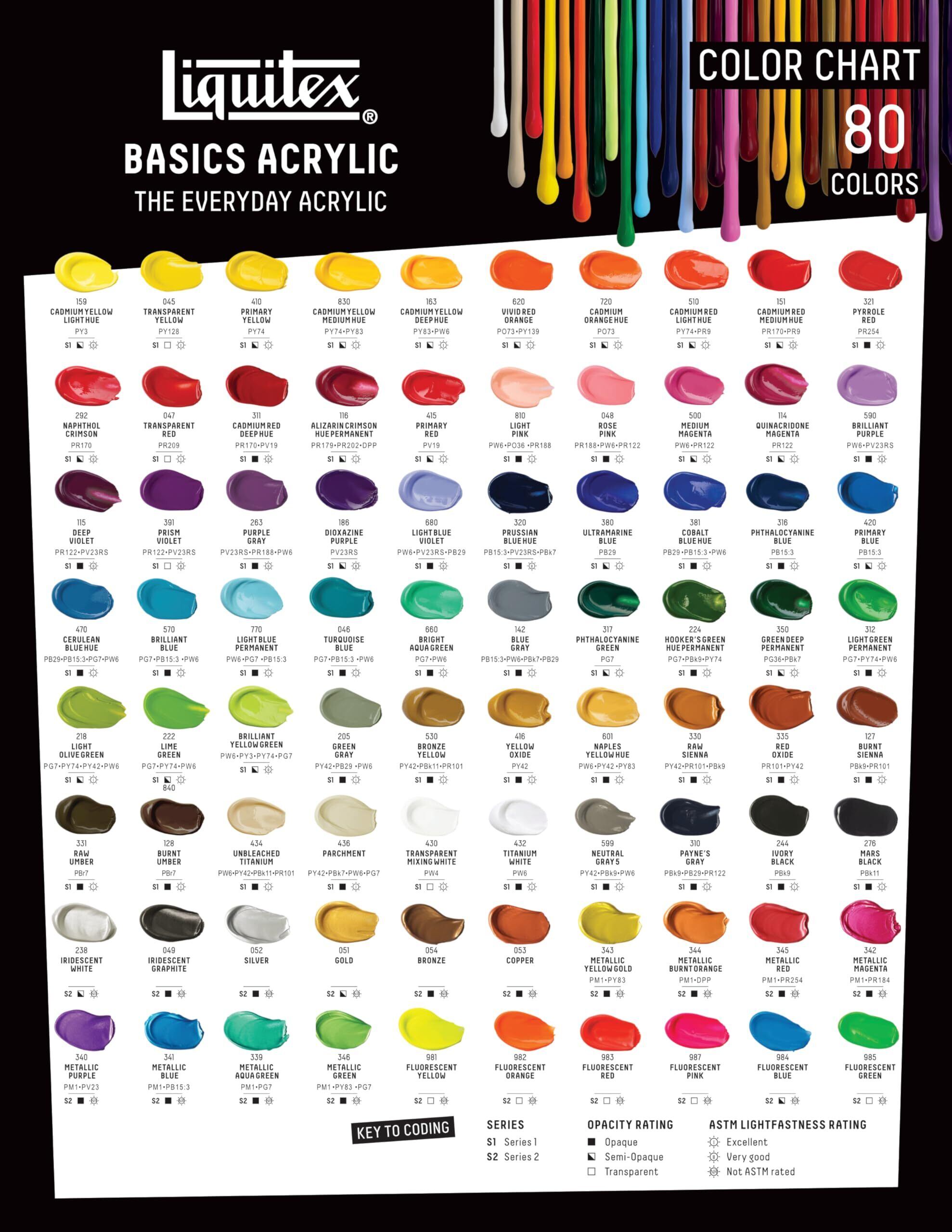 すべてのリキテックス製品と同様、ベーシックスに使用されている顔料もさまざまな耐光性試験をクリアしています。