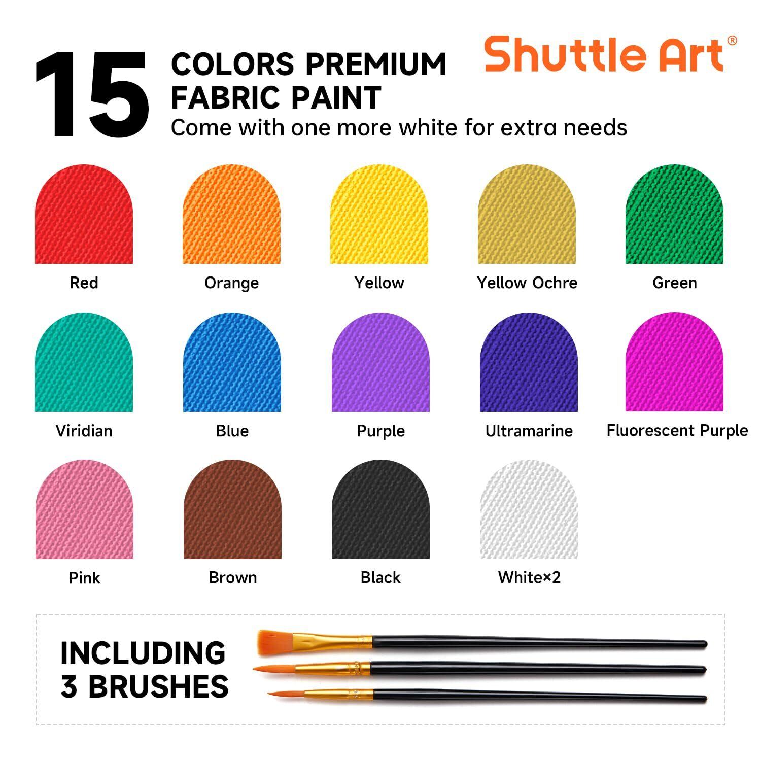 Shuttle Art 布用絵の具 14色(白2本入り) 12ml 布絵の具セット 布描き絵の具 ウォッシャブル 洗っても落ちない ファブリックペイント ペイントブラシ3本付き 速乾 耐久 Tシャツ かばん スニーカー イラスト DIY 収納便利 子供 プレゼント