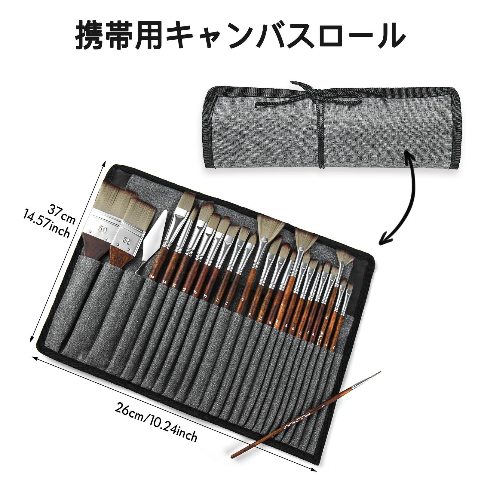 絵筆セット、絵の具 筆、アクリル絵の具 筆、25本画筆、油絵 筆、画材、プロフェッショナル・シリーズ、布製ロールケースとパレットナイフ付き、多用途、携帯便利、コンパクト収納、油絵、アクリル・キャンバス画用、プロのアーティストから初心者まで、学校、アートコース、野外スケッチ、塗り絵、丸型、平型、平丸筆、扇型筆、斜め筆、細筆、FCS認証のバーチ材を使用
