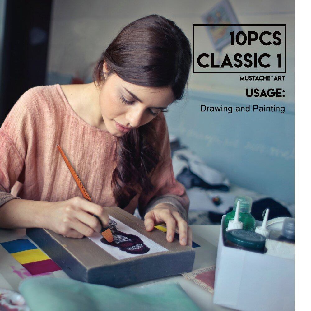 多目的塗装用:10個のさまざまな形状が多くの絵画メディアで使用できます。油絵/アクリル画/フェイスペインティング/ガッシュペインティング/アート&クラフト。2色の人工毛は、多くのアートメディアの絵を描くことができます。