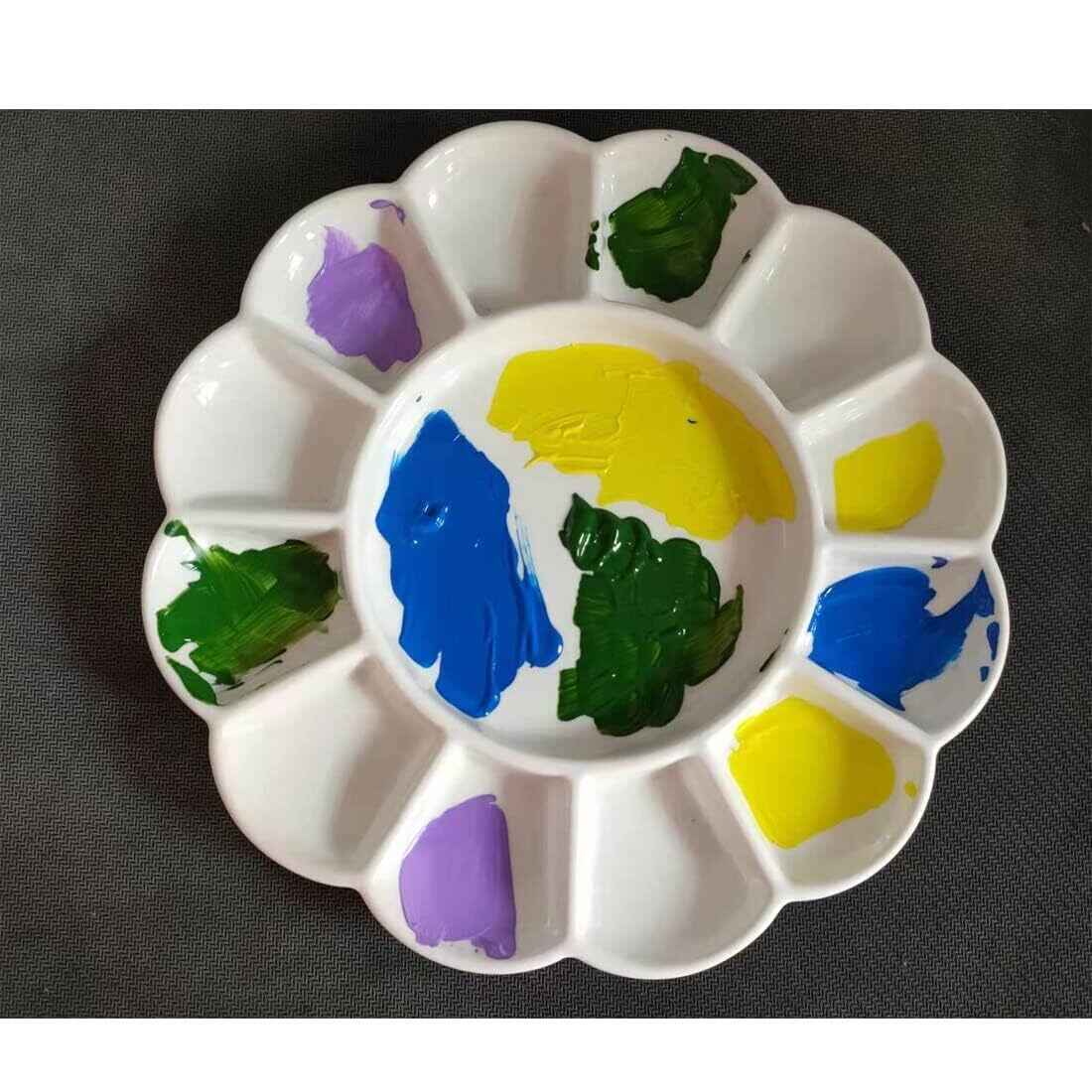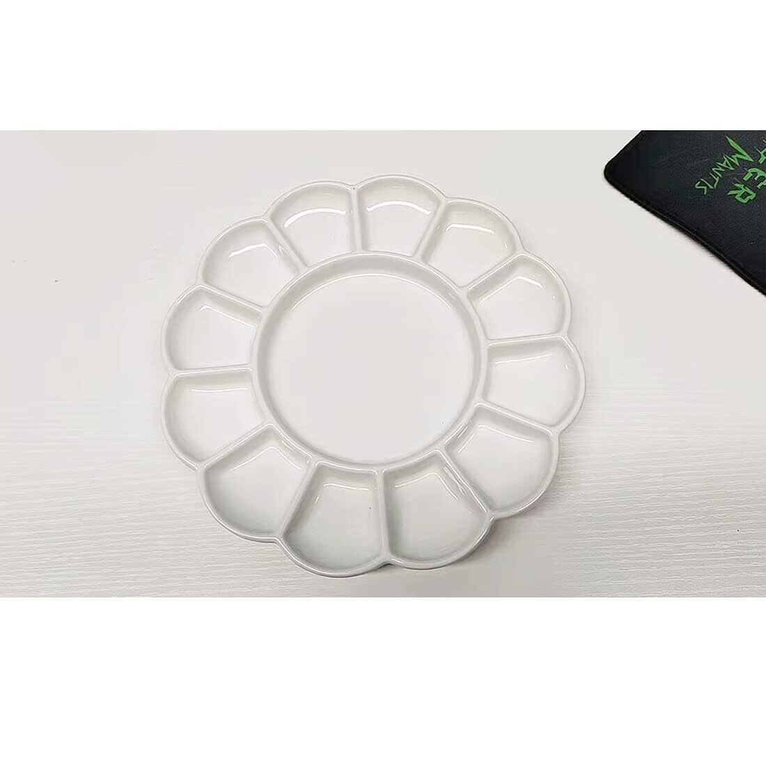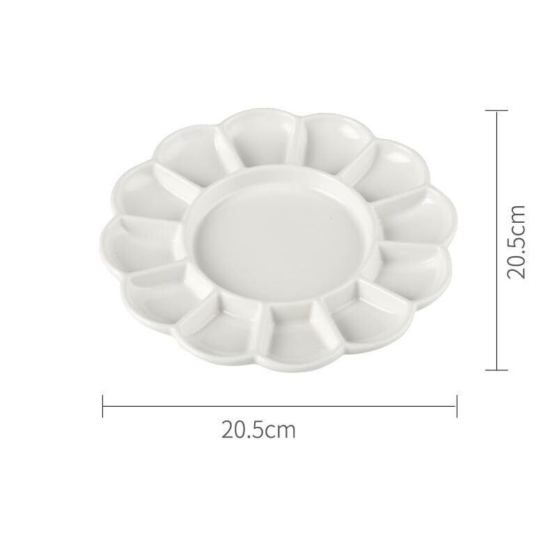 水彩パレット セラミック製 陶器製 13穴 円形 ミニ 絵皿 菊皿 絵の具 パレット 水彩・水粉画・アクリル画材 スケッチ旅行 デザイン プロ 専門家用 贈り物