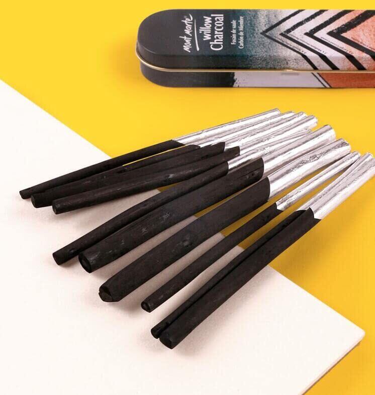 【在庫セール】画用木炭 10本セット チャコール 芯抜き 木炭 デッサン 画材用筆 描きやすい 柳の木炭筆 ソフト 絵画 素描 スケッチ 画用木炭筆 美大生 初心者 デザイン 木炭スティック 缶ケース入り チャコール