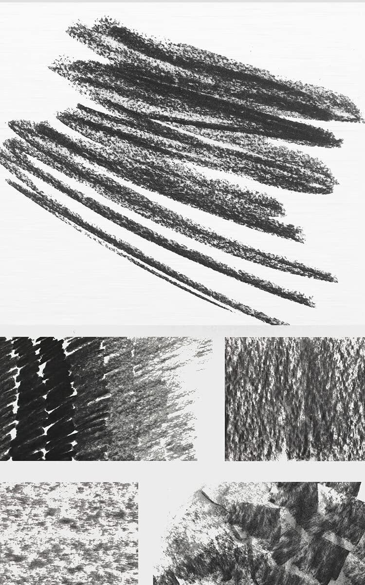 鉛筆より木炭筆デッサンではスムーズに微妙なラインを描けて、文字やモチーフなど濃淡の変化が表現しやすくなります。寝かせて色を乗せる際も安定性が抜群で、美術練習などでぼかし筆や擦筆で消したら、味があります。
