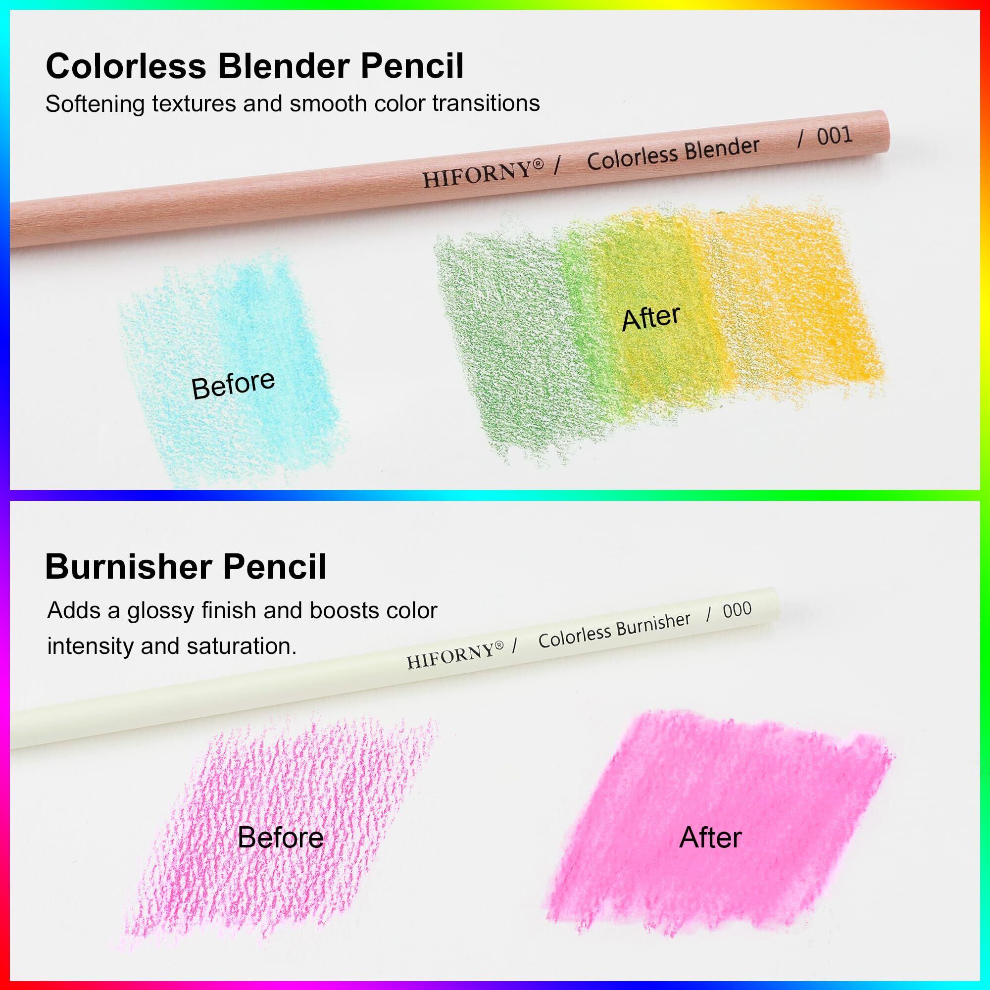 ブレンダー&バーニッシャー – アートワークを高めましょう:付属の無色のブレンダーペンシルは、色をシームレスにブレンドして滑らかにし、ソフトな移行と洗練された仕上げを作り出します。 バーニッシャーペンシルは光沢仕上げを加え、色の濃さと彩度を高めます。深みと鮮やかさ、プロ級の外観を描くのに最適です。