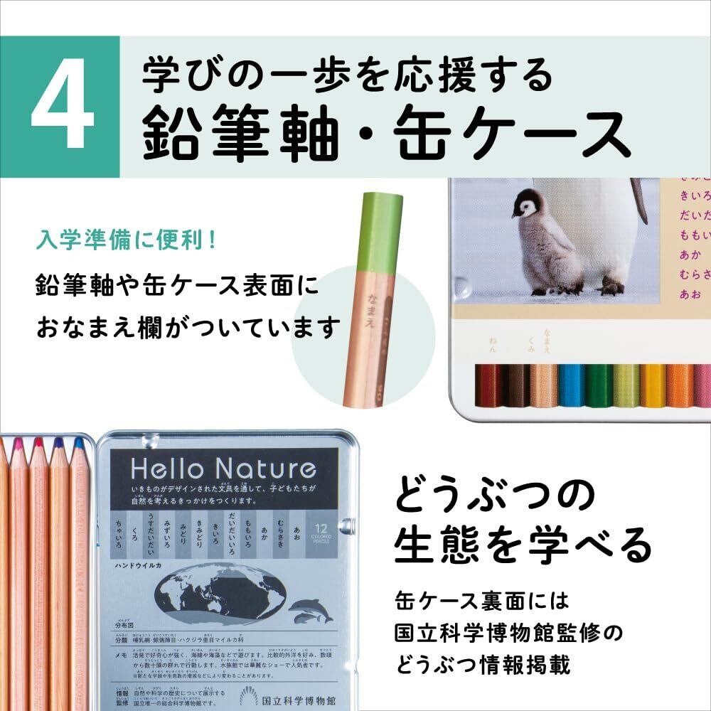 トンボ鉛筆 色鉛筆 12色 (六角軸) 小学生 (6年間使えるシンプルデザイン) ハローネイチャー コウテイペンギン CB-KHNEP0312C
