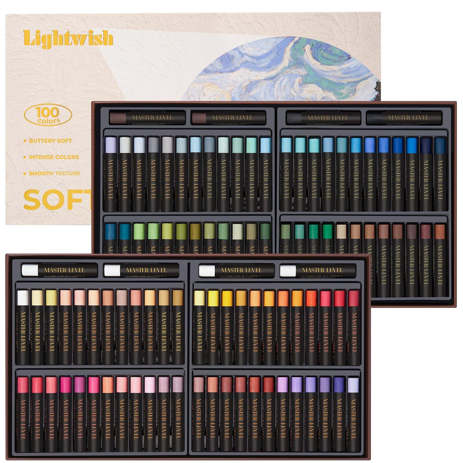 LIGHTWISH プロフェッショナル オイルパステル 100色+白4本 計104本 鮮烈発色 耐光性 ブレンド専門 クリーミーソフト 混色/重ね塗り最適 無毒認証 アーティスト用 スケッチ/風景画/デッサン