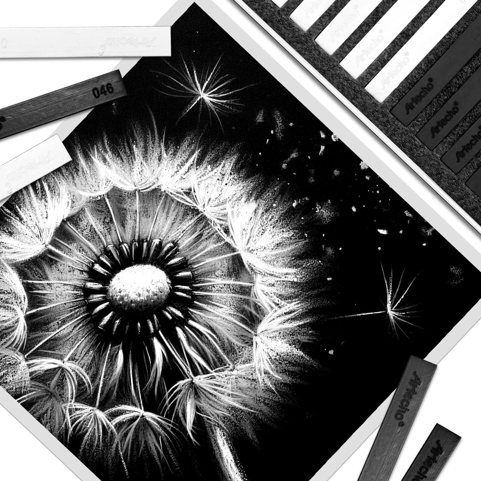 【華麗なカラー】アルテチョベーシックソフトパステルはブラック6枚、ホワイトソフトパステル6枚入り。 高品質顔料。