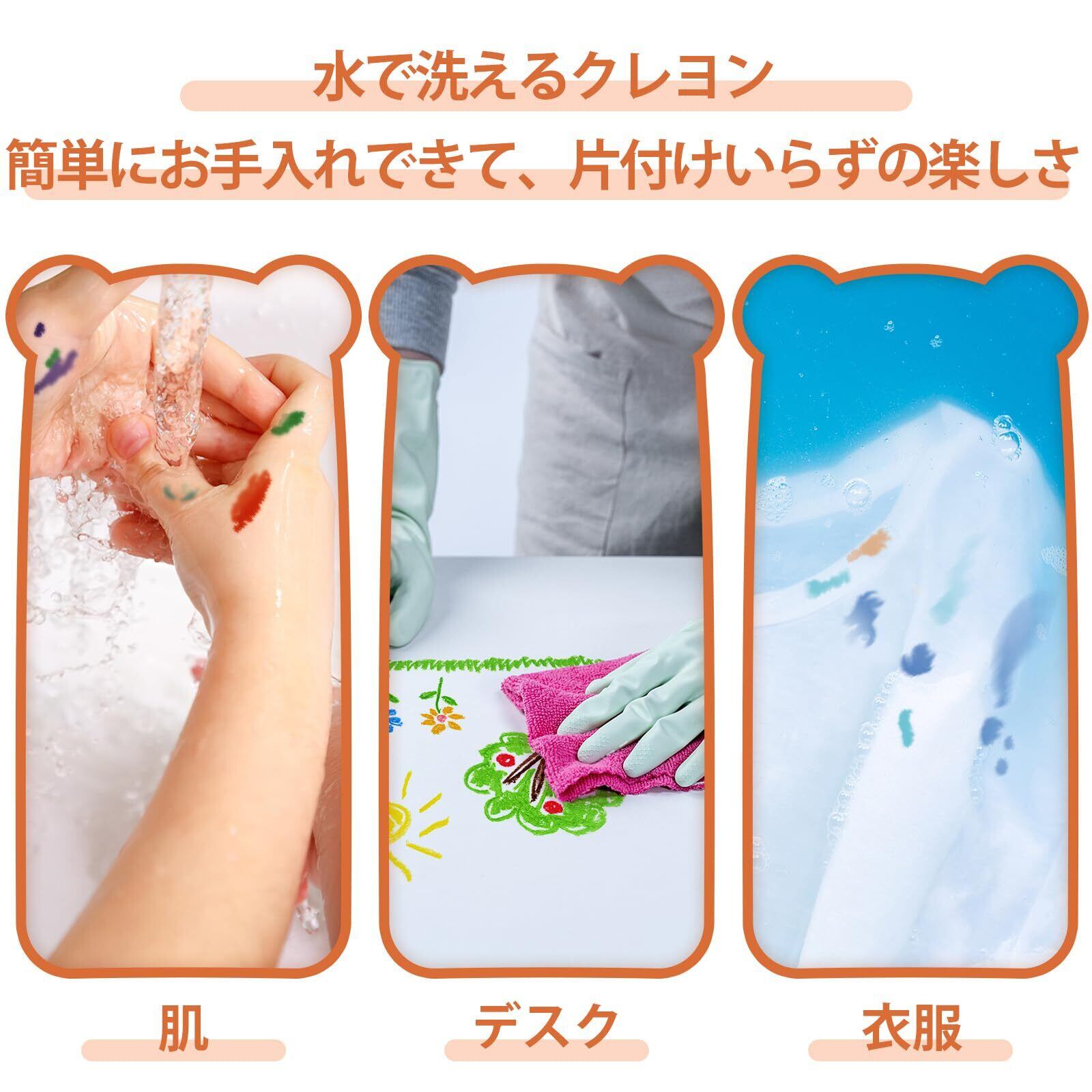 【非毒性&洗えるクレヨン】 安全で無臭の成分から作られ、EN-71-3およびASTM D-4236基準を満たしているため、1歳から4歳のお子様に最適です。簡単に掃除できるように設計されており、肌、家具、衣服からの汚れもサッと拭き取れるので、お子様の創造力を限りなく引き出せます。