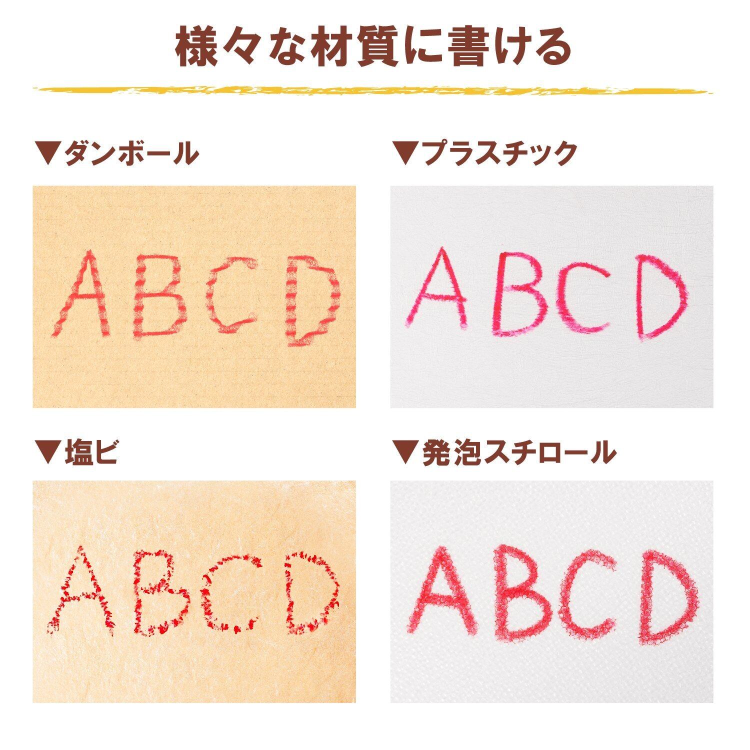 【特長2】油性マーカーとして、木材、金属、プラスチック、ゴムへのマーキングに