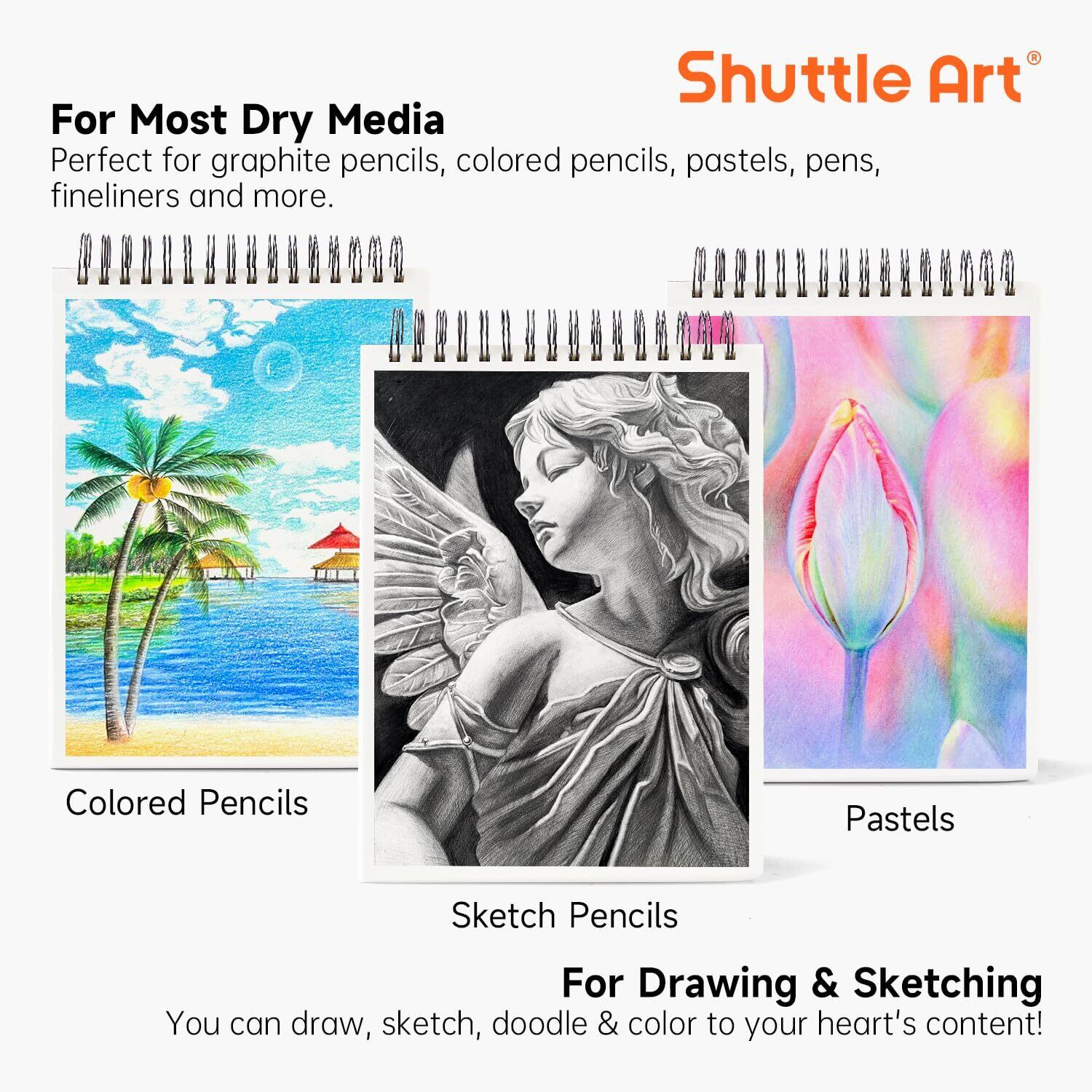 Shuttle Art スケッチブック 130枚 2冊セット スパイラル製本 図案付 画用紙 クロッキーブック お絵かき帳 落書き帳 自由帳 写生帳 サイン帳 メモ帳 ダブルループワイヤ デッサン用紙 フォトブック スクラップブック 画材 紙 中性紙 学校・旅行・野外スケッチ用