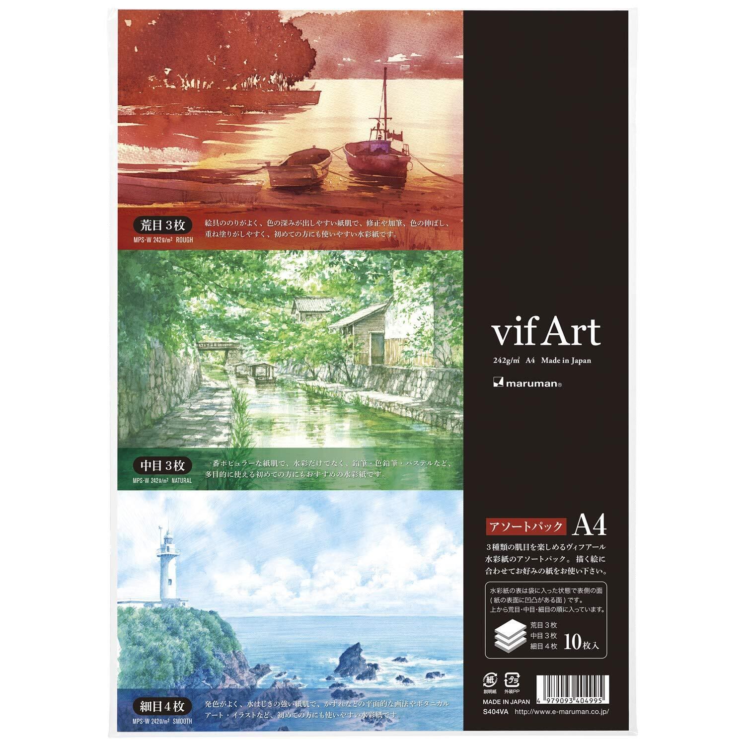 【本文】ヴィフアール水彩紙 荒目3枚 中目3枚 細目4枚 計10枚 ×5冊セット