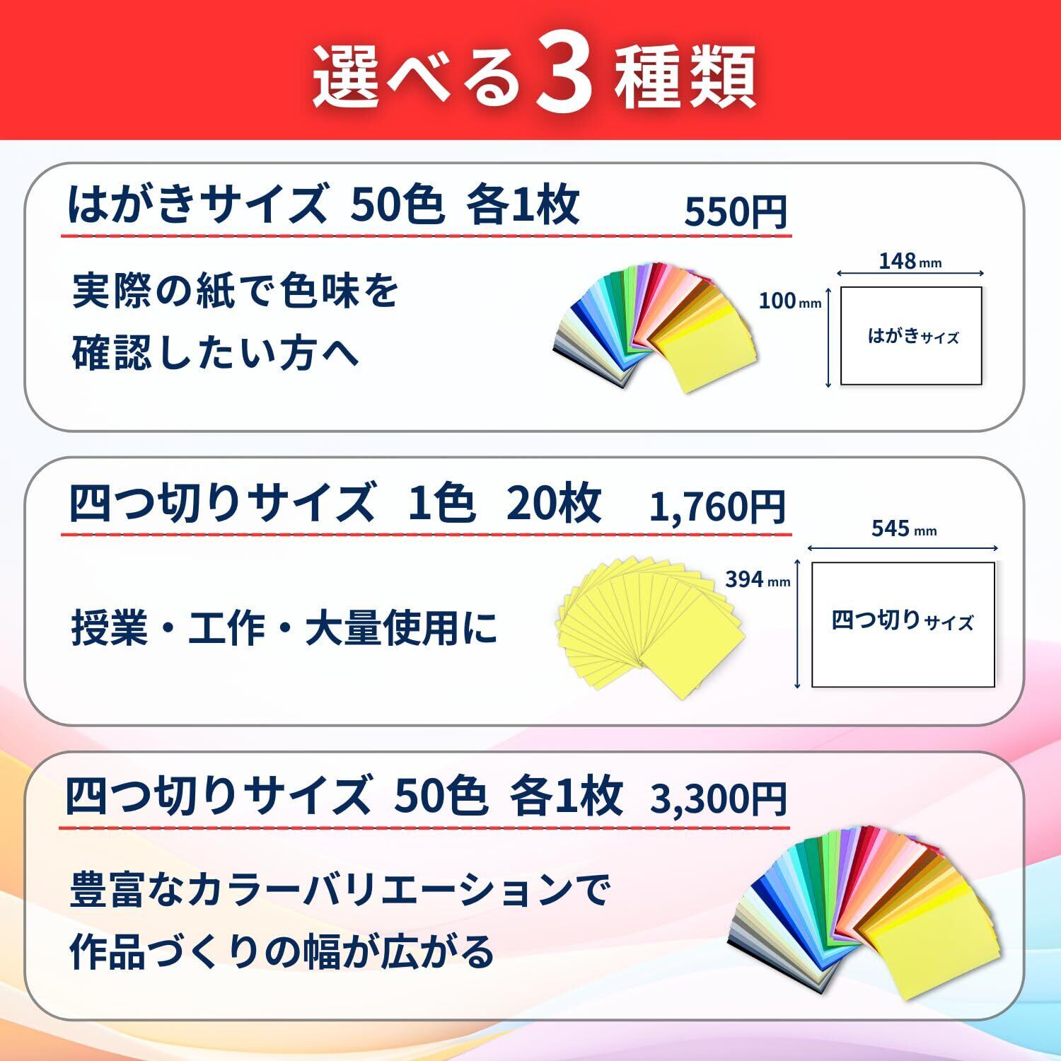 【2022最新】四つ切 色画用紙 394×545mm やよいカラー 50色×各1枚 日本製 適度な厚み 紙厚約0.19㎜ 工作 教材 装飾に最適 保育園 幼稚園 小学校から大学まで幅広く導入済 年間10万枚以上の販売実績 田村商店オリジナルパック 全色セット 50枚入