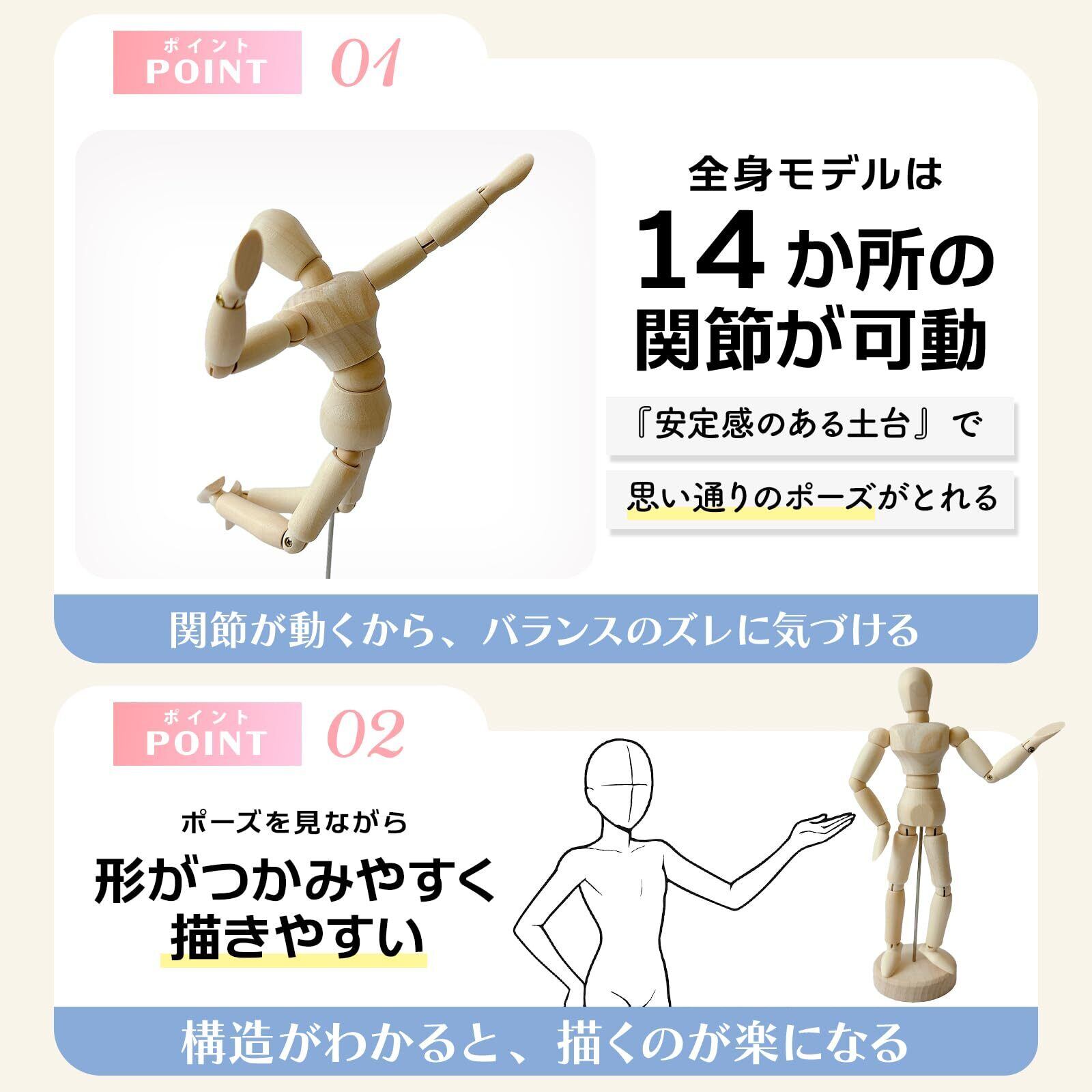 【形が分かりやすい全身モデル】 14箇所の関節が可動可能で、バランスのズレに気づきやすいです。また、安定感のある土台で思い通りのポーズをとることができます。
