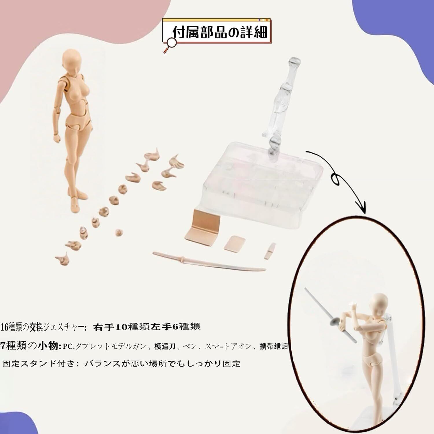 【全身改良版!圧倒的な30可動関節】 「バリの目立ち」「関節の緩さ」「パーツ交換の難しさ」「可動の硬さ」といったお声に応え、改良を重ねました!!全身30ヶ所以上の関節にこだわり、あらゆるポーズを再現。あなたの思い通りにポーズを決められ、あらゆる角度からの観察とデッサンを可能にします。男性モデル:全長約14cm、女性モデル:全長約13cm。対象年齢:15歳以上