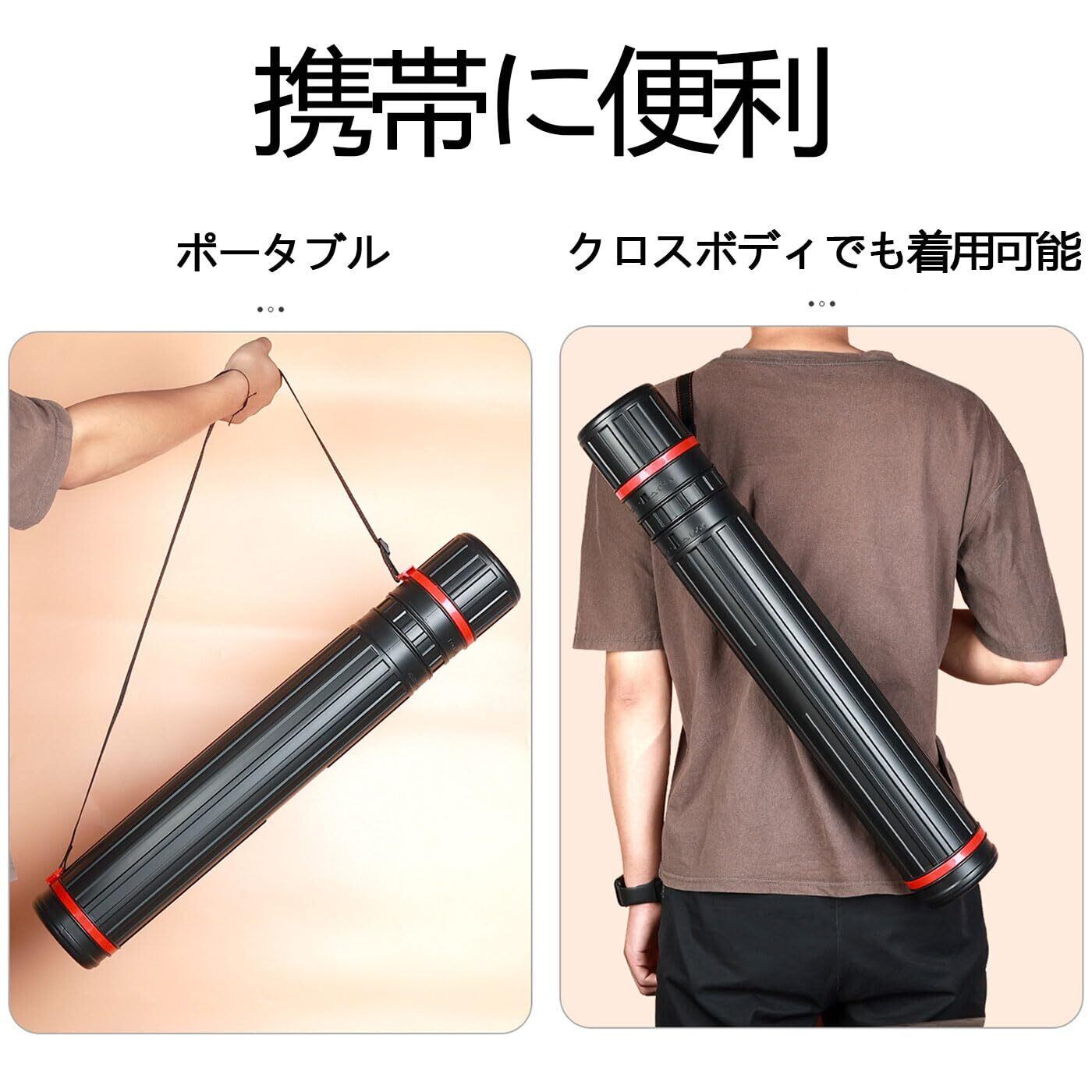 【商品仕様】セット内容:ポスターケース 1 個。サイズ:約 45cm~70cm。カラー:黒。素材:PE プラスチック。