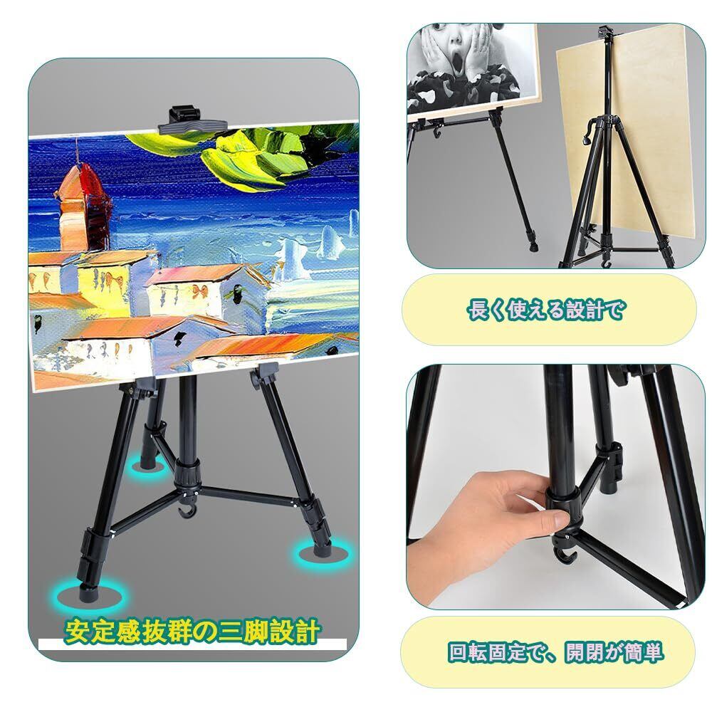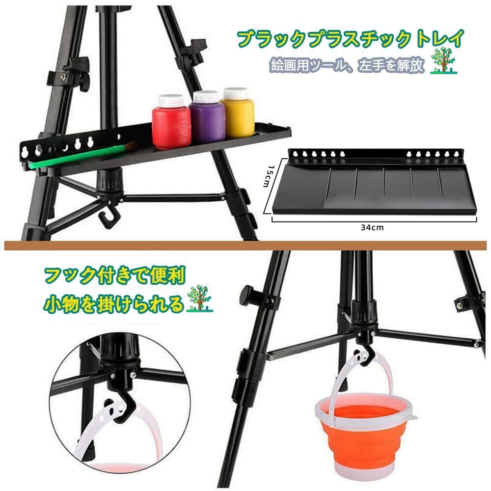 イーゼル 55-160cm 金属 画架 折りたたみ 携帯 軽量 三脚式 手回し 高さ調整可能 スケッチ 素描 写生 水彩 絵画 教室 屋外 室内用 (トレイ付き)