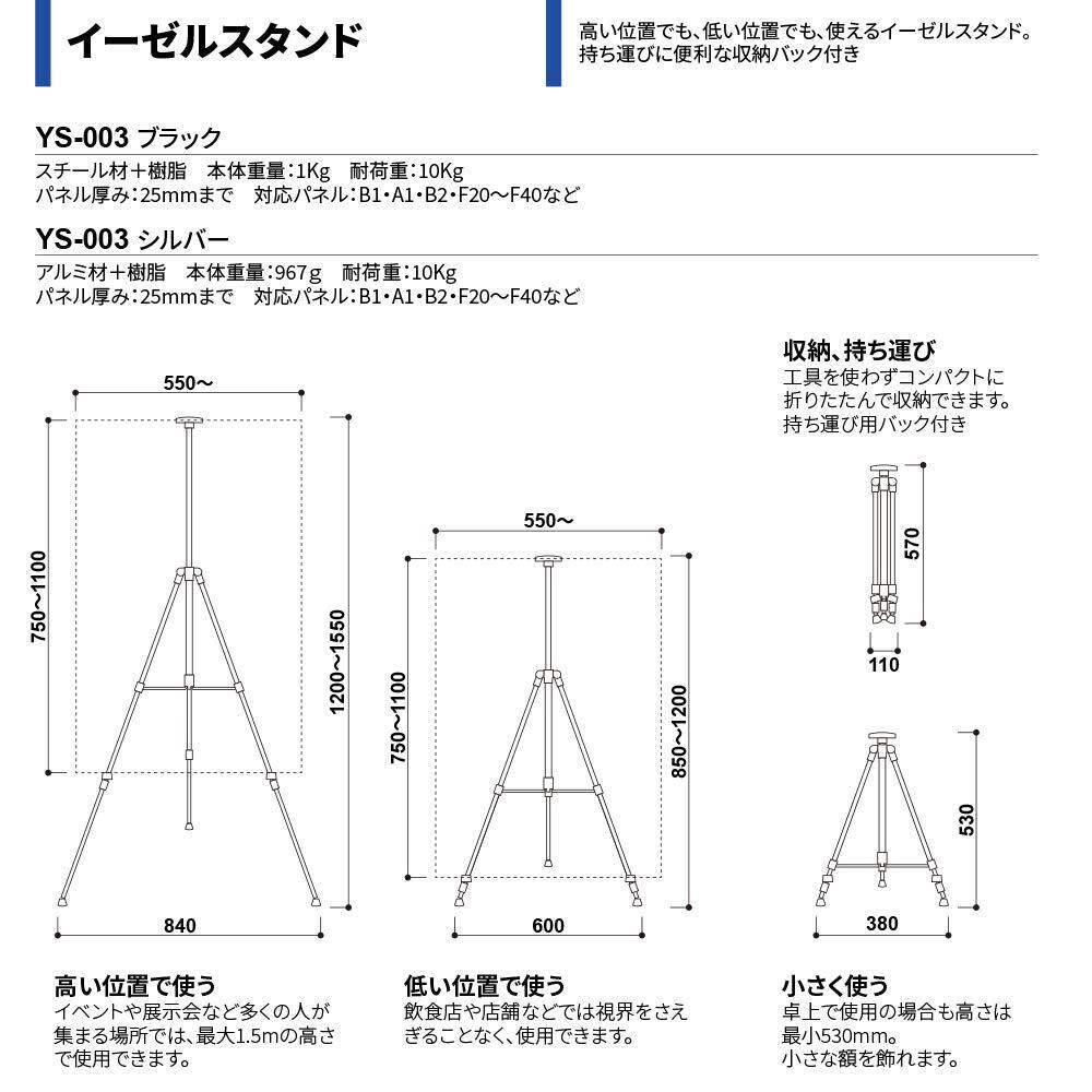 【新着商品】THE DISPLAY (ザ・ディスプレイ) YS-003シリーズ B1・A1・B2パネル対応 イーゼル !メタルイーゼル 三脚イーゼル 3段伸縮タイプ 折りたたみ 式 (黒, 1)