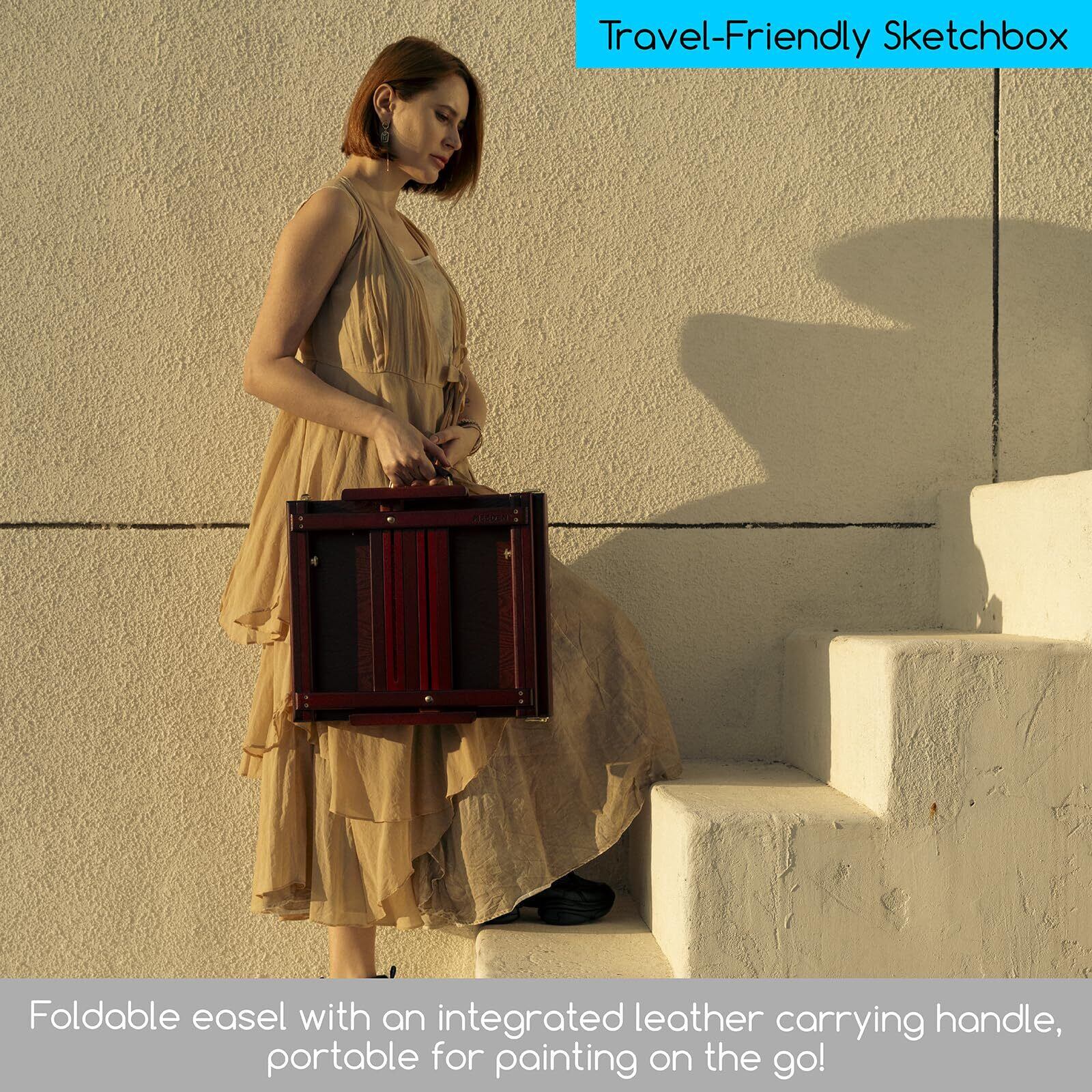 MEEDEN 卓上イーゼル 木製 折りたたみ式 収納ボックス付き 画板立て 高さ調整可能 スケッチイーゼル スケッチボックス テーブルイーゼル 芸術家、学生、初心者木製芸術収納ボックス 写生用 スケッチ用 ダークレッド