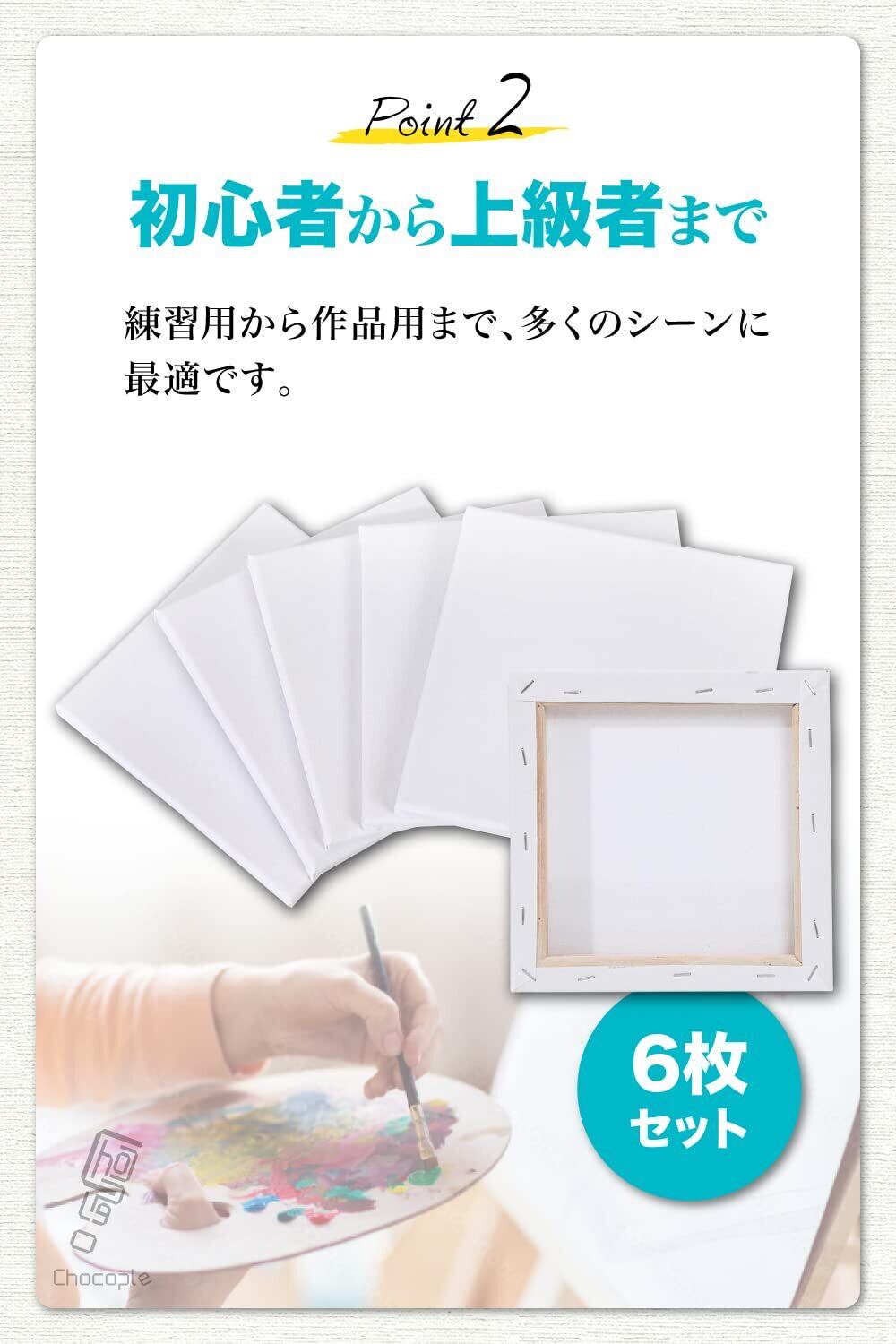 Chocople キャンバス キャンバスボード ミニキャンバス 正方形 画材 絵画 水彩画 油絵 20cm×20cm 6個 セット