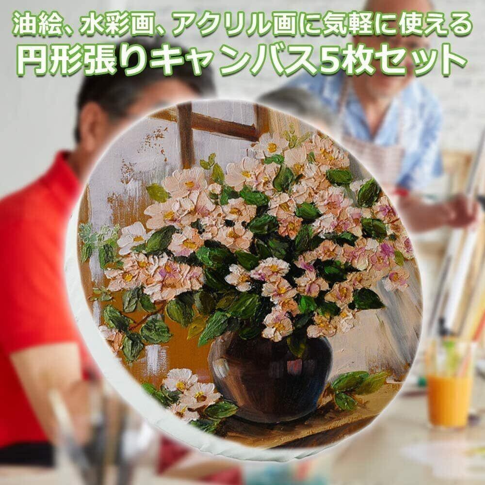 描画キャンバス 5点セット 円形 100% コットン アクリル 水彩画ボード (直径20cm)