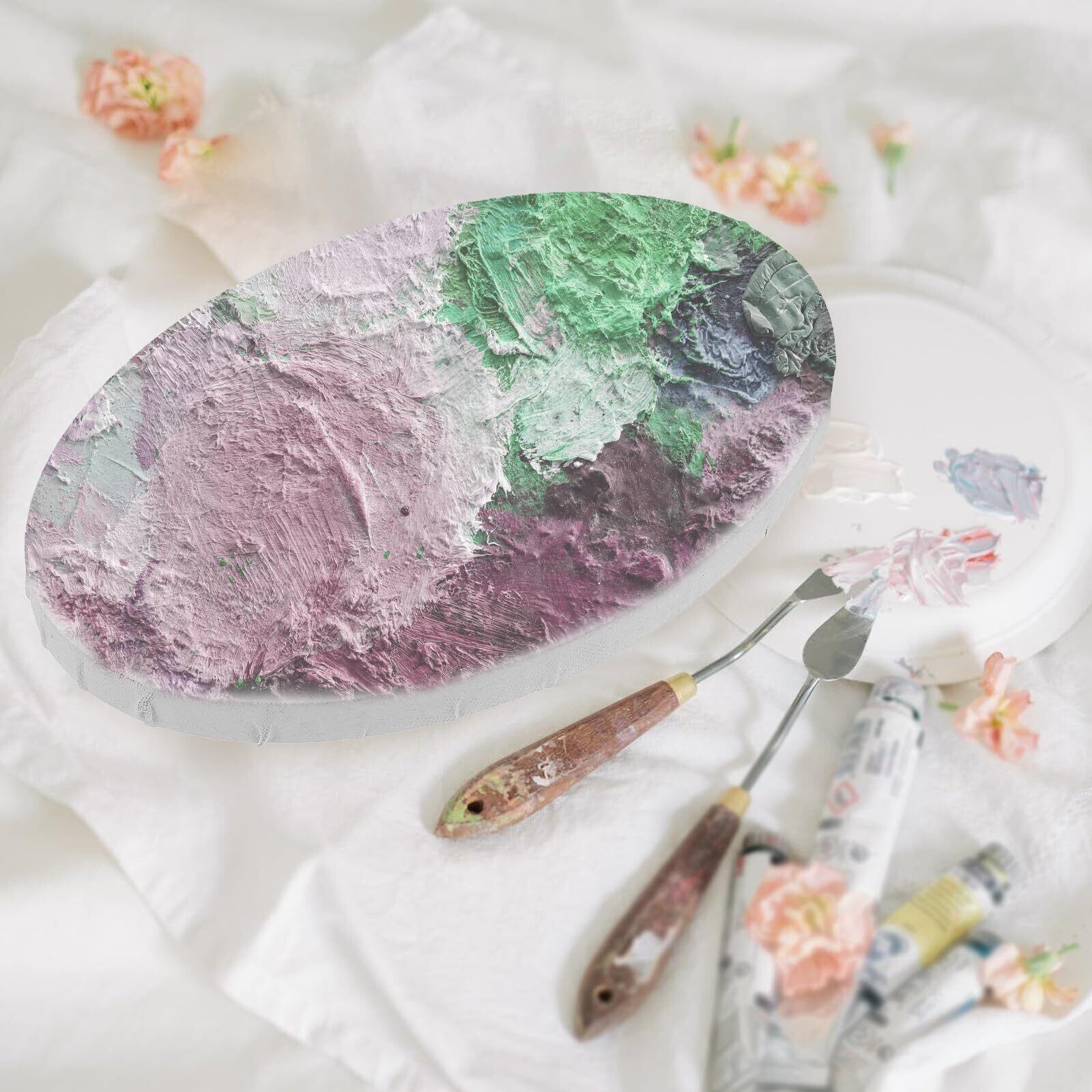 な楕円形キャンバスフレーム:サイズは約11.8×7.9×0.6インチで、油絵やアクリル画、テンペラなど多様な画材に対応。学生や初心者に適した安定した構造で、創作活動をサポートします。