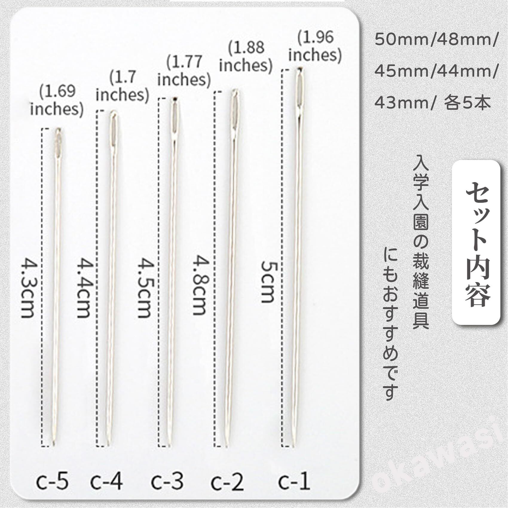 OKAWASI 手縫い針 丸針 縫い針 25本入り 全5種 ぬい針 縫い針 レザークラフト用針 DIY 裁縫 糸編み フェルト針 厚地縫い用針 手芸 収納容器付き