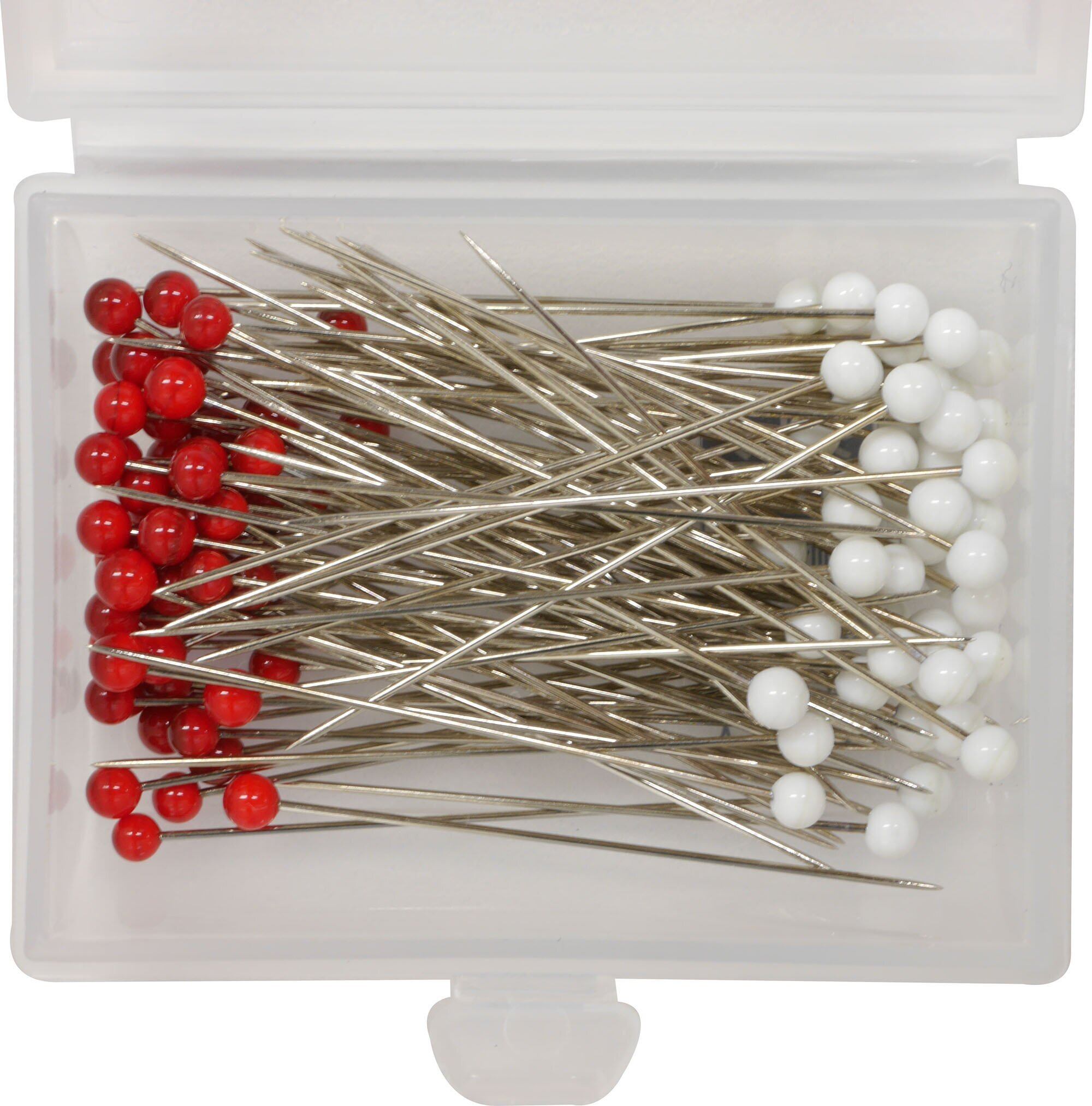 太さ約0.5mmの細い待ち針ですので、抜いた後が目立ちにくく、小さな頭はミシンがけにも便利です。