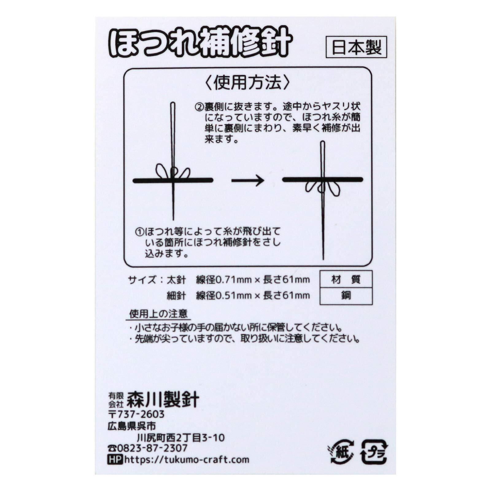 TUKUMO(つくも) ほつれ補修針 2本 ケース付 便利 ほつれ直し ほつれ補修 (単品)