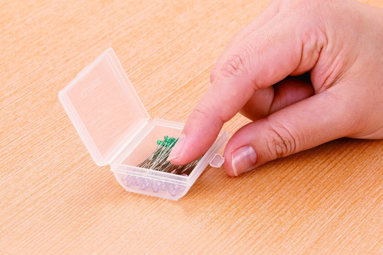耐熱ガラスの小さい頭でアイロンを使用するシーンでも安心。ミシンでの作業にも邪魔にならない。