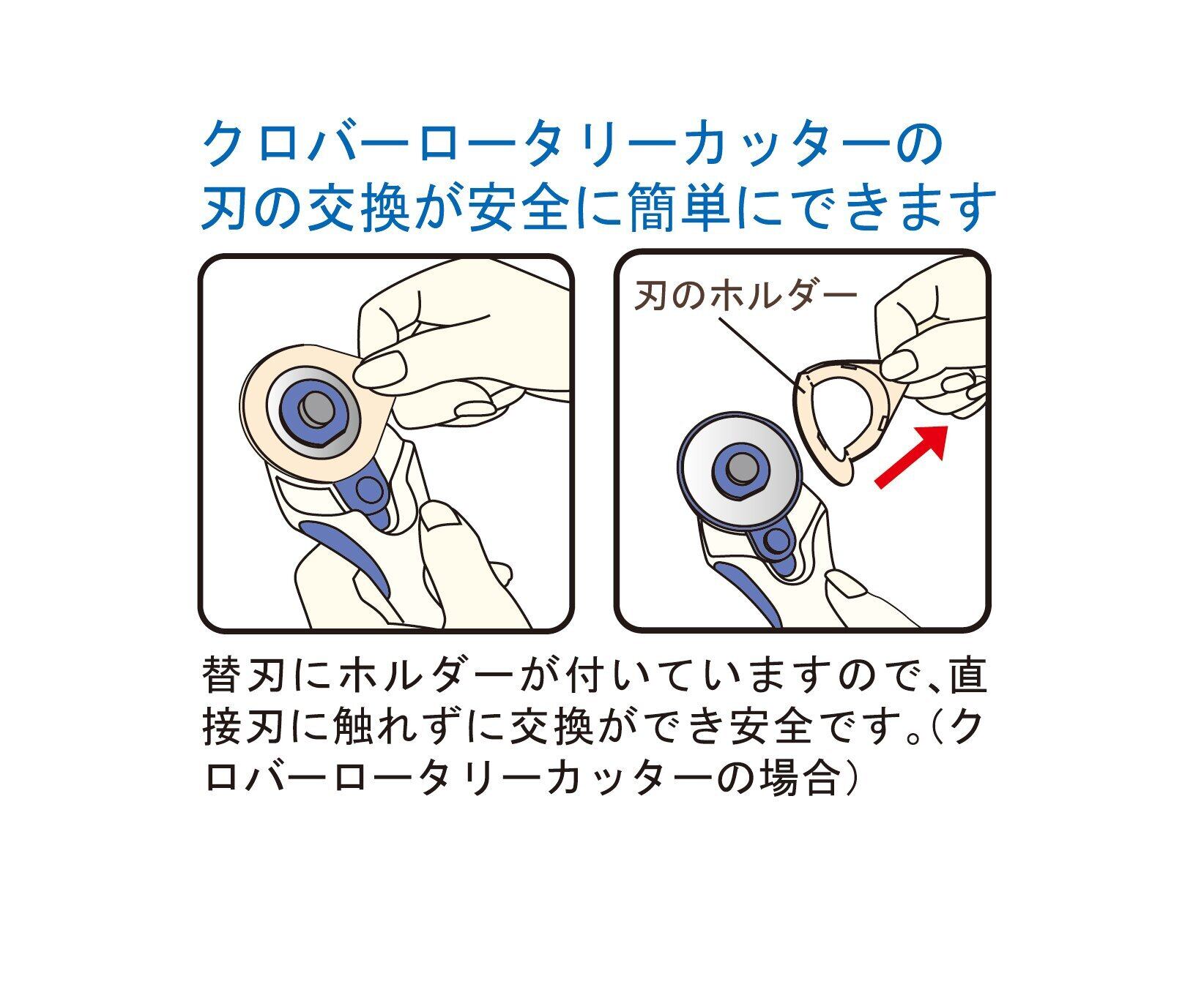 クロバーロータリーカッターの刃の交換が安全に簡単にできます替刃にホルダーが付いていますので、直接刃に触れずに交換ができ安全です。