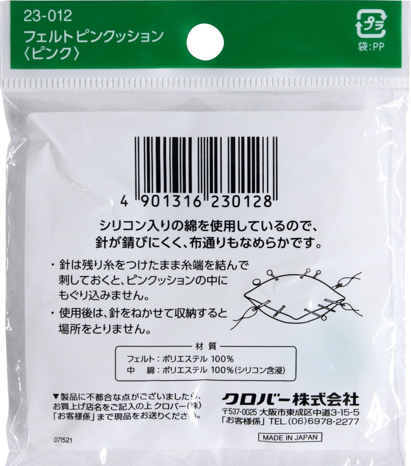 【在庫セール】Clover フェルトピンクッションIIピンク 23-012