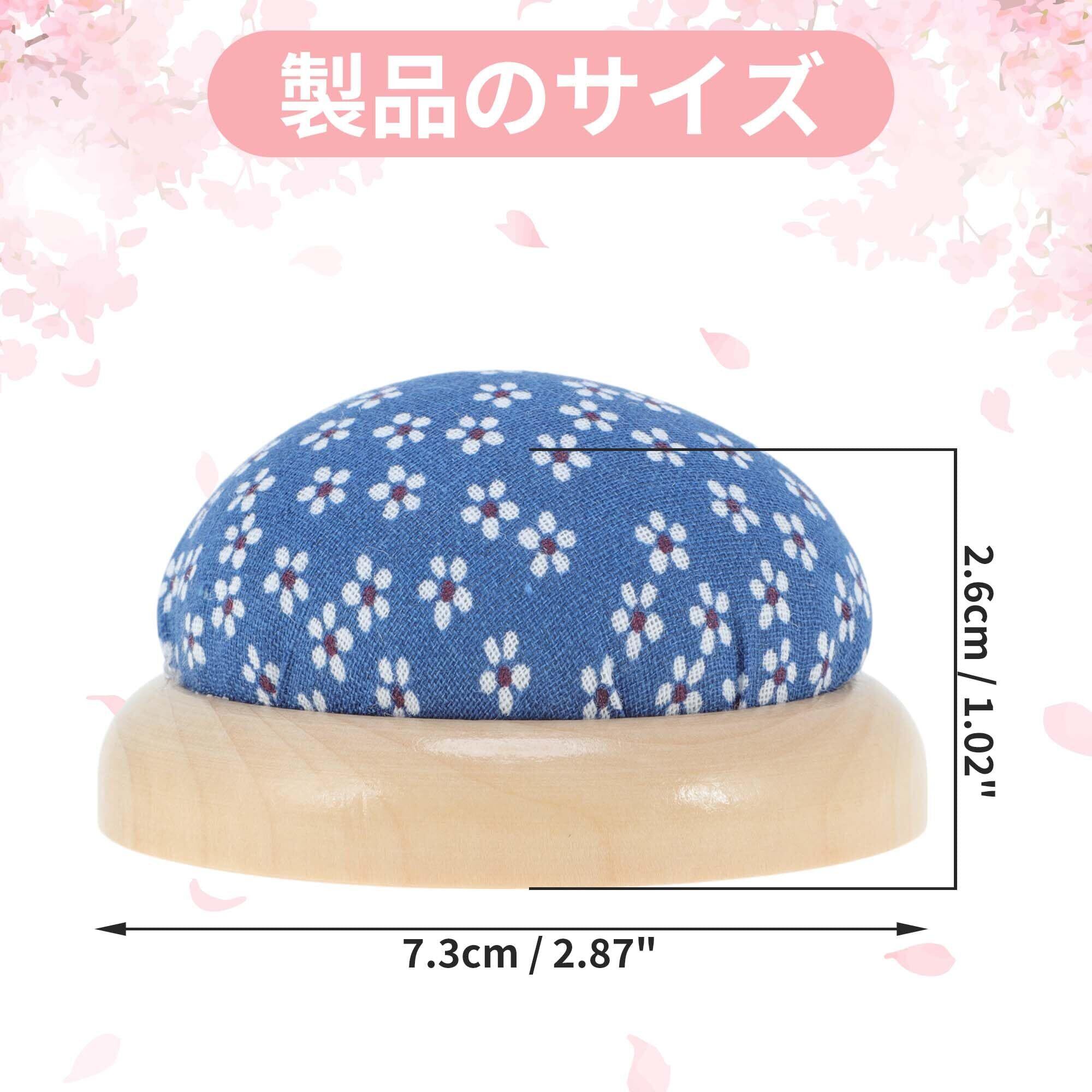 CAPASTEC ピンクッション 木製ベースの針ピンクッション 日常の刺繍やDIYクラフト用の花柄の丸いピンクッション 深い青色の混合色